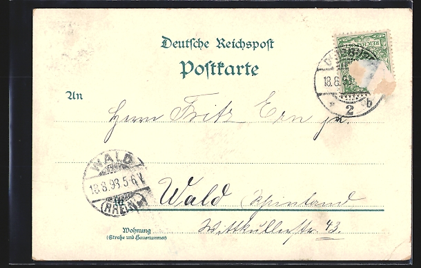 gelaufen 1898, rückseitig Oberflächenschaden, guter Zustand