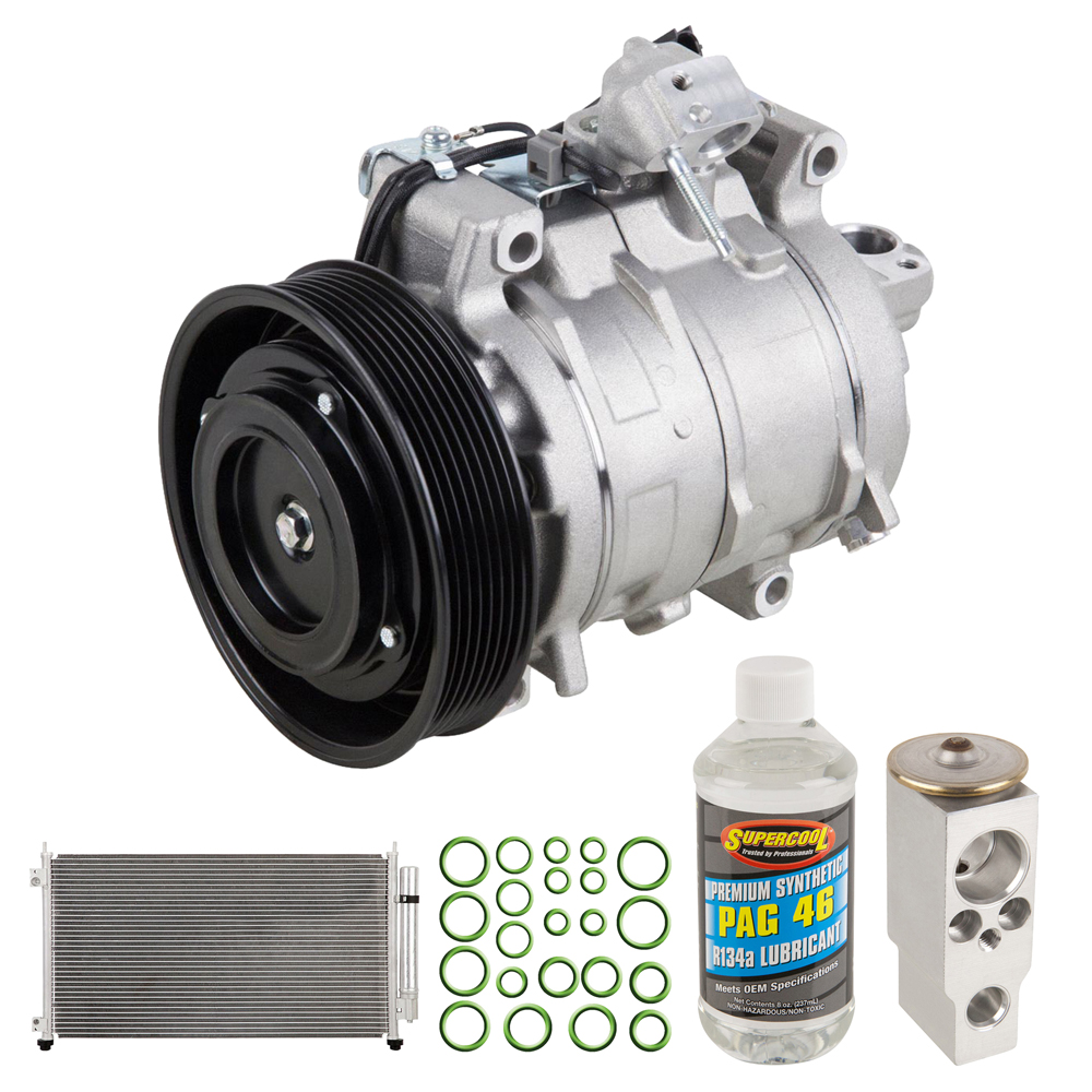 This 5 piece Complete AC Kit includes a brand new AC compressor, condenser with built in accumulator/drier, expansion device, a bottle of AC compressor oil and a pack of the correct o-rings for your system to prevent leaks. This kit is designed to include all of the right parts to make the repair process easier and save you money. The accumulator/drier used in your AC system is built into the condenser, so to make things easier this kit includes a new condenser with built in accumulator/drier.