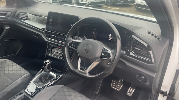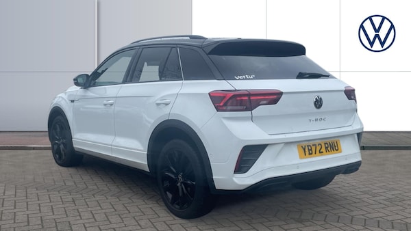 Now available at Vertu Volkswagen Nottingham South, the Volkswagen T-Roc Hatchback 1.5 TSI R-Line 5dr DSG with Black Pack combines sporty, head-turning design with practical SUV versatility and efficient performance, powered by the responsive 1.5 TSI engine paired with the smooth DSG automatic gearbox for a refined and confident drive. The R-Line trim — enhanced further by the Black Pack — adds striking black exterior styling, distinctive alloy wheels, and premium interior touches, giving the T-Roc an even bolder, more aggressive road presence. Inside, you’ll enjoy a digital instrument cluster, intuitive touchscreen infotainment system with seamless smartphone connectivity, Adaptive Cruise Control, Lane Assist, LED headlights, front and rear parking sensors, and automatic climate control to elevate comfort and convenience on every journey. The vehicle comes with tyres replaced if under 3mm, a minimum of 9 months MOT, no servicing costs for 6 months or 6,000 miles, and includes two keys for added assurance. As part of the Volkswagen Approved Used programme, you’ll also benefit from a 12-month Volkswagen warranty, 12 months roadside assistance, a comprehensive multipoint inspection, full history and mileage checks, a 30-day/1,000-mile exchange policy, free 5-day insurance, and access to flexible finance options tailored to your needs..Climate Control, Satellite Navigation, Alloy Wheels, Heated Seats, DAB Radio, Bluetooth, Parking Sensors, Full Service History, Manufacturer Approved, Adaptive cruise& Apple-Android Play, Front + rear carpet mats, Rain sensor, Heated rear window, Rear wash/wipe with intermittent wipe setting, Front windscreen wiper with intermittent wipe and 4 position delay, Power windows with comfort operation and circuit breaker, ABS, Rear disc brakes, Electronic parking brake, Hill start assist, Volkswagen roadside assistance, Electronic Stability Control (ESC) inc EDL (Electronic Differential Lock) and ASR (Traction Control), City emergency braking and pedestrian monitoring, Online services, Wireless app connect, Mobile phone interface, Dynamic road sign display, Modified key software - reduce switch off time for key status change to Long no motion, Lane keeping system Lane Assist, Park assist including front and rear parking sensors, Tailgate/trunk lid release from outside