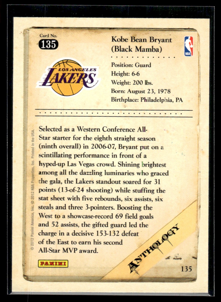 | 2012-13 Panini Kobe Anthology Kobe Bryant Los Angeles Lakers #135 |