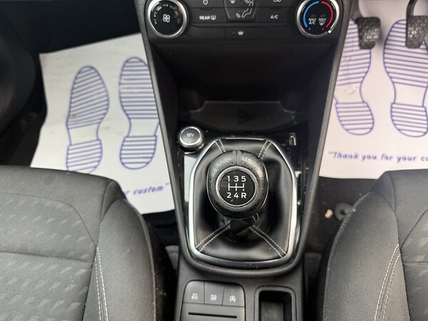 .City Pack,Shadow Black, Ford DAB Radio with Ford SYNC3 - Apple Car Play and Android Auto, Trip Computer, Tyre Pressure Monitoring System - TPMS, 15in Alloy Wheels - 8 Spoke, Body Coloured Electrically Operated Door Mirrors with Integrated Side Indicators, Chrome Belt Line Finisher, Chrome Upper Grille, Door Handles - Body Colour, Electrically-Operated Front Windows with One Touch Drivers, Front Bumper - Body Colour, Quickclear Heated Windscreen, Rear Bumper - Body Coloured Upper and Self Colour Lower, Rear Spoiler - Body Colour, Tyre Repair Kit, Wipers - Standard with 6 Speed Interval Settings, Front Fog Lamps with Cornering Lights, Headlights - Automatic On-Off, Headlights - Halogen Projector with Black Bezel and Dedicated LED Daytime Running Lights, 3-Spoke Leather Trimmed Steering Wheel with Audio Controls, Air Conditioning - Manual, Centre Console with Two Cupholders and 12V Power Point, Courtesy Light - Front Map Light and Rear - Overhead LED, Door Lever - Chrome Finish, Gearshift Knob - Leather-Trimmed, Glovebox - Illuminated, Headliner - Woven, Leather-Trimmed Handbrake, Manual Drivers Seat Height Adjustment, MyKey, Overhead Console - Sunglasses Holder, Rear Fog Lamps, Rear Seat - 60-40 Split Back and Cushion, Seats - Front Comfort Style, Steering Column - Rake and Reach Adjustment, Warning Triangle Storage, Power Steering, ABS - Anti-lock Braking System, Airbags - Driver, Airbags - Front and Rear Side Curtain, Airbags - Front Passenger, Airbags - Side Curtain, Airbags - Side Impact, EBD - Electronic Brakeforce Distribution, Electronic Stability Control - ESC with Traction Control and Emergency Brake Assist - EBA, Electronic Stability Programme - ESP with Hill Start Assist, Ford Easy Fuel System, IPS - Intelligent Protection System, NCAP Pack, Remote Central Locking and Engine Immobiliser, Tailgate Wash-Wipe, Thatcham Alarm