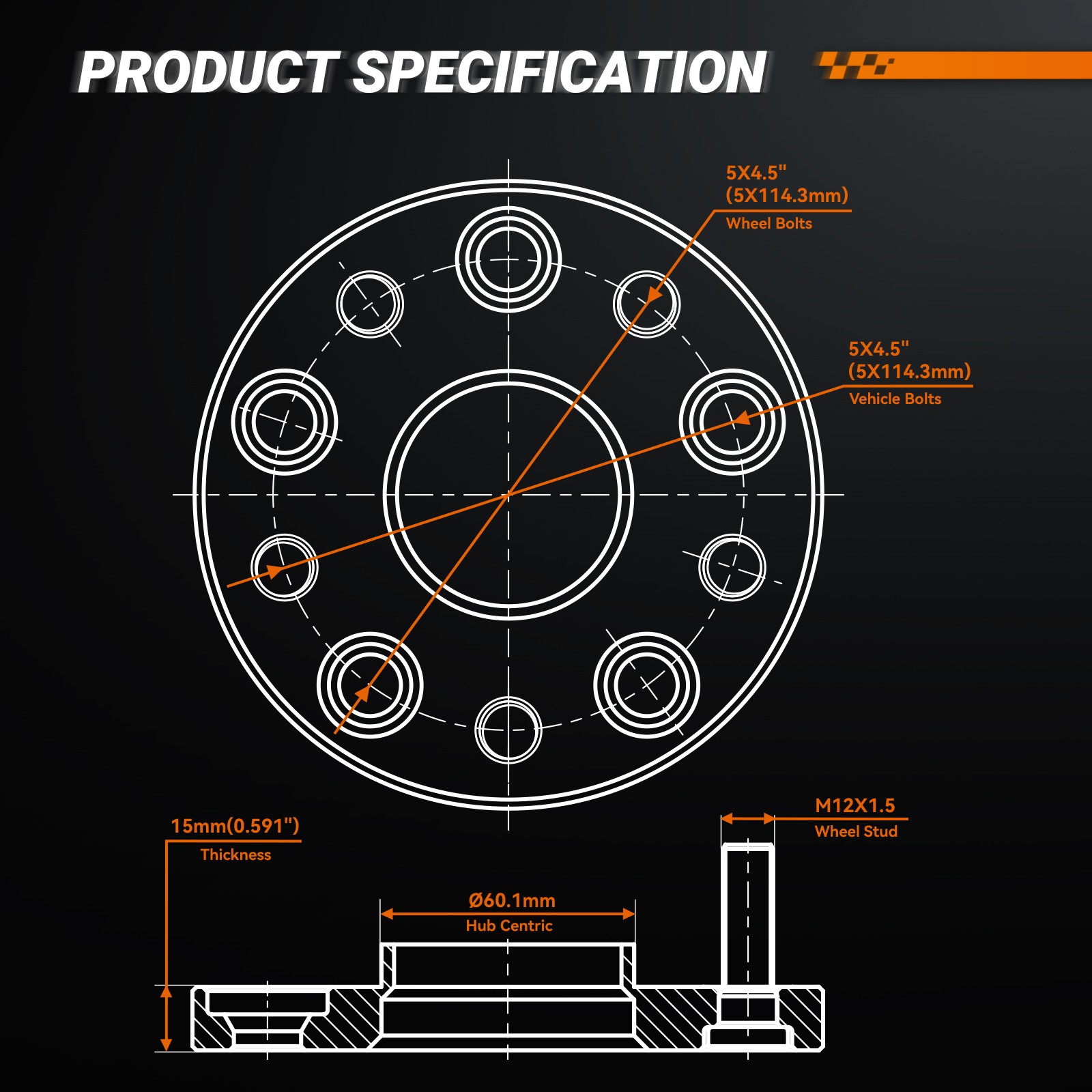 Wheel Bolt Pattern:5x4.5''/5x114.3mm