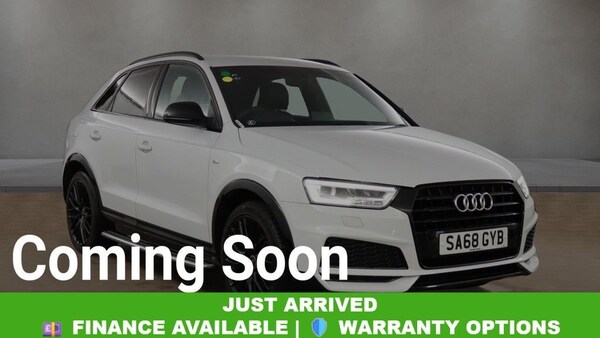 Why This Audi Q3 TFSI Wins? This 2018 Audi Q3 TFSI Black Edition blends sharp styling with everyday practicality. Powered by a responsive 1.4 litre Euro 6 petrol engine, it offers a refined yet efficient drive, perfectly suited for both city commutes and motorway cruising. The sought-after Black Edition trim enhances its presence with distinctive styling touches that give it a sportier, more premium edge. Specification is a real highlight. LED headlights with matching LED rear lights and dynamic rear indicators ensure excellent visibility and modern road presence. Inside, dual-zone electronic climate control keeps everyone comfortable, while Bluetooth connectivity keeps you seamlessly connected on the move. The premium BOSE surround sound system transforms every journey with rich, immersive audio quality. A light and rain sensor automatically manages the headlights and wipers, adding extra convenience to your daily drive. Performance is equally impressive, with 0-62mph achieved in just 8.9 seconds. Delivering up to 46 mpg and benefiting from low CO? emissions, this Q3 stands out as an efficient and well-balanced SUV in its class. Your Peace of Mind? - Clear vehicle history check - Optional 3-36-month extendable warranties - Free 12-month AA roadside assistance - Fully prepared to showroom standard with its existing MOT and servicing, and we can organise any further MOT or service enhancements at your request. - Drive Away, Insurance Available - No hidden or extra costs, like admin fees Autotraders 2024 Insights: Top 3 Audi Q3 Buyer Priorities: - Premium interior quality and comfort - Efficient yet responsive performance - Strong specification and technology - This Q3 Black Edition delivers across the board, combining sporty styling, impressive fuel economy, engaging performance, and high-end features like BOSE audio and dual-zone climate control - making it a smart and stylish SUV choice. Stress-Free Next Steps: - Free Part Exchange Valuation - £0 Deposit Car Finance - Includes free credit checker - Reserve for £99 - Fully refundable.6.5in Colour Display Screen, AMI - Audi Music Interface, BOSE Surround Sound System, Bluetooth Interface, Concert Radio, DAB Digital Radio, Drivers Information System - DIS - 3.5in - Monochrome Display, Satellite Navigation System - SD Card Based, Towbar Preparation, Door Mirrors - Heated-Electrically Adjustable-Folding-Auto-Dimming Drivers, 19in Alloy Wheels - 10-Y-Spoke Design - Diamond Cut Finish, Anti Theft Locking Wheel Bolts, Black Roof Rails, Black Styling Pack with Black Roof Rails, Chrome-Plated Trims for Exhaust Tailpipes, Door Mirrors - Heated-Electrically Adjustable-Folding, Electric Windows - Front, Front Lip and Rear Diffuser in Full Paint Finish - Diffuser Insert Painted Platinum Grey, Full Body-colour Paint Finish with Front and Rear Bumpers - Wheel Arch Trims and Lower Door Trims in Gloss Black, Gloss Black Door Mirrors, Gloss Black Rear Spoiler, Privacy Glass, S Line Badges on Front Wings, Space Saver Spare Wheel, Windscreen with Acoustic Glazing, 4-Way Electric Lumbar Support for Front Seats, Auto-Dimming Rear-View Mirror, Cloth Headlining in Black, Dual-Zone Electronic Climate Control, Extendable Luggage Compartment Cover, Flat-Bottomed 3-Spoke Perforated Leather-Trimmed Multifunction Steering Wheel-Contrast Stitching with Paddles, Front Centre Armrest, Front and Rear Floor Mats, Gear Knob - Perforated Leather, Inlays - Piano Finish - Black, LED Interior Light Package, Manual Seat Adjustment, Pedals in Stainless Steel, Power Operated Tailgate, Reversible Luggage Compartment Floor, Split-Folding Rear Seats, Stainless Steel Loading Sill Protector, Steering Wheel - Height and Reach Adjustable, Tool Kit and Car Jack, Electromechanical Power Steering - Speed-Sensitive Provides a Precise Steering Feel at High Speeds and Excellent Assistance when Parking., Front and Rear Fog Lights, LED Headlights with LED Rear Lights and Dynamic Rear Indicators, Light and Rain Sensor, S Line Sports Suspension, Audi Hill Hold Assist, Anti-Theft Alarm, Audi Drive Select, Audi Parking System Plus, Cruise Control, Driver - Front Passenger - Front Side and Head Airbag System, ESC - Electronic Stabilisation Control inc ABS - ASR and EDL, Electromechanical Parking Brake, First Aid Kit and Warning Triangle, ISOFIX Child Seat Mounting and Top Tether, Remote Central Locking, Seat Belt Monitoring, Secondary Collision Brake Assist, Tyre Pressure Loss Indicator, Voice Control System