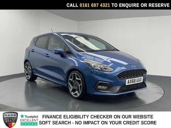 FINISHED IN BLUE AND STYLED WITH 17" ST 5-SPOKE ALLOY WHEELS - SERVICE HISTORY + HEATED FRONT SEATS + AIR CONDITIONING + SAT NAV + CRUISE CONTROL + B&O PLAY PREMIUM SOUND + DAB DIGITAL RADIO + LED DAYTIME RUNNING LIGHTS + HALOGEN HEADLIGHTS + HEATED ELECTRIC DOOR MIRRORS + ISOFIX REAR SEATS + ST BODYKIT WITH SPORTS SUSPENSION + FLAT-BOTTOM LEATHER MULTI-FUNCTION STEERING WHEEL + SELECTABLE DRIVE MODES INCLUDING NORMAL, SPORT & TRACK ------------FINANCE------------ ***NOT SURE YOURE ELIGIBLE FOR CAR FINANCE? *** CHECK TODAY USING THE FREE CAR FINANCE CHECKER ON OUR WEBSITE.** Dace Motor Group have a dedicated team of finance experts waiting to help with your enquiry. Over the past 30 years we have forged relationships with the countrys largest and best finance houses. We are specialists in Hire Purchase (HP), Personal Contract Purchase (PCP) as well as assisting those with poor credit or previous credit problems. ------------ABOUT US------------ At Dace Specialist Car Centre Manchester, we are very proud to be named the first Trading Standards Approved Car Retailer, with process and procedures developed with and applauded by them. We do recommend that customers RESERVE their choice of vehicle prior to making their trip, to avoid potentially missing the car. Visit our website At Dace Specialist Car Centre Manchester we carry over 700 cars in group stock. TO ENQUIRE OR RESERVE PLEASE CALL - ------------WARRANTY------------ Unlike most car dealerships who provide limited cover warranties through an anonymous third-party provider, we provide our own unrivalled, nationwide cover on every car. So, when you need assistance the most, you will be helped by the staff who you already know. + 3 MONTHS WARRANTY FREE + EXTENDED WARRANTIES AVAILABLE + ------------ADVERT ACCURACY------------ Although we make effort to ensure the description of our vehicles is accurate, mistakes can happen. We are human after all! So, whether it is the exact specification of a vehicle you need clarifying, the service history dates and mileages, even the colour shade - please speak to a member of our sales team and they will happily confirm all you need to know about this car. PLEASE NOTE - our adverts can never be cited as the reason you have brought a car incorrectly, as no purchase can be completed without the customer physically examining the car. As such, the physical viewing and documenta.17in Alloy Wheels - ST 5 Spoke - Matt Black - Machined Finish, 18in Alloy Wheels - ST 5 Spoke - Magnetic - Machined Finish, Adjustable Boot Load Floor, Air Conditioning - Electronic Automatic Temperature Control - EATC, Airbags - Driver and Front Passenger, Airbags - Front and Rear Side Curtain, Airbags - Front Side Impact, Anti-Lock Braking System - ABS with Electronic Brake Force Distribution - EBD, B and O PLAY In-Car Audio Premium Sound System, Black Belt Line Finisher, Blind Spot Information System with Cross Traffic Alert, Blue Front Seat Belts, CD Player, Centre Console with Armrest and Illuminated Cupholders, City Pack, Courtesy Light - Ambient LED Courtesy Lighting, Courtesy Light - Front Map Light and Rear - Overhead LED, Cruise Control, Door Edge Protectors, Door Handles - Body Colour, Door Lever - Chrome Finish, Door Mirrors - Heated - Electric - Integrated Side Indicators - Body Coloured, Driver and Passenger Seat Lumbar Adjust, Driver Assistance Pack, Electric Windows - Rear, Emergency Brake Warning - Automatic Hazard Warning Lights, Enhanced Electronic Stability Control - ESC with Traction Control - Emergency Brake Assist - EBA - Hill Start Assist - HSA and Trailer Sway Control, EPAS - Electric Power Assisted Steering, Floor Mats - Front and Rear with Blue Stitching, Ford Easy-Fuel Capless Refuelling System, Ford KeyFree System, Ford Navigation System with Ford SYNC 3 - Apple CarPlay and Android Auto and FordPass Connect - Embedded Modem, Front Bumper - Unique ST, Front Door Threshold Plates - Ford Performance ST, Front Seat - Drivers Manual Height and Fore-Aft Adjustment, Front Upper Grille - Unique ST, Frozen White, Full LED Headlamps, Gearshift Knob - Leather-Trimmed with Aluminium Insert, Glovebox - Illuminated, Gozil Fabric - Ebony-Blue, Headlights - Automatic On-Off, Headlights - Halogen Reflector with Grey Bezel and LED Daytime Running Lights, Headliner - Black Woven, Headliner - Woven-Dark, Heated Driver and Passenger Seats, Heated Steering Wheel, IPS - Intelligent Protection System, Keyless Start with Ford Power Start Button, Large Rear Spoiler - Body Colour with Centre High Mounted Stop Light, Leather-Trimmed Handbrake, Magnetic, Moondust Silver, MyKey, NCAP Pack, Opening Panorama Roof, Overhead Console - Sunglasses Holder, Performance Blue, Quickclear Heated Windscreen, Race Red, Rear Bumper - Unique ST with Sport Diffuser, Rear Fog Lamps, Rear Lights - LED Night Signature, Rear Privacy Glass, Rear Seat - 60-40 Split Back and