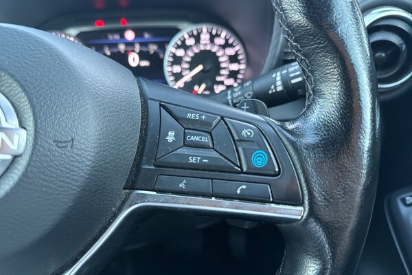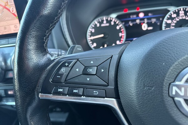 ..7'' full colour TFT screen combimeter, Apple CarPlay and Google Android auto, Drive modes select (Eco, normal and sport), Emergency and breakdown call, Front parking sensor, Idle start/stop system, Intelligent lane intervention, Lane departure warning system, Nissan connect 8'' touch screen entertainment system, Nissan connect nav with TomTom traffic, Nissan connect services and Wifi connection, Outside temperature sensor, Power Steering, Rear parking sensor, Traffic sign recognition, Trip computer, Voice recognition, Gasoline particulate filter, 10 Bose speakers 6 speakers and 2 headrest speakers for driver/passenger seats, Bluetooth system, USB, Aux-in and 12V socket, Bose personal sound stage control, DAB Digital radio, Rear console USB port, Auto dimming interior rear view mirror, Auto headlights, Automatic hazard signal with emergency stop signal, Body colour bumpers, Body colour door handles, Electrically adjustable door mirrors with integrated indicators, Follow me home headlights, Front and rear electric window with one touch driver window, Heated and auto folding door mirrors, High beam assist, LED daytime running lights, LED front fog lights, LED headlamps, LED rear fog lamp, LED rear lamps, Rain sensor windscreen wipers, Rear privacy glass, Rear side wing doors, Rear wiper, Thermaclear heated windscreen, Three blink turn signal, 3 height adjustable rear headrests, 3 seat bench in 2nd row, 60/40 split folding rear seat, Automatic climate control, Card holder on driver sunvisor, Door ambient lighting, Driver and passenger sliding and reclining seats, Driver seat back pocket, Driver side rear coat hanger, Driver/passenger sunvisors and vanity mirrors, Front and rear cabin lights, Front armrest, Front door pockets with bottle holders, Front head restraints, Front passenger isofix child seat anchorage point, Front/rear passenger grab handles, Gear console ambient circle lighting, Grey synthetic leather kneepad, Heated front seats, Height adjustable driver's seat, Height adjustable passenger seat, Internal chrome door handles, Leather gearshift knob, Leather steering wheel, Luggage board, Luggage space lighting, Monoform sporty seats, Multifunction steering wheel, Passenger seat back pocket, Rear door bottle holders, Single front passenger seat, Steering wheel mounted gearshift paddles, Synthetic leather upholstery, Telescopic steering wheel adjustment, Two cupholders in front centre console, Two rear isofix child seat anchorage points with top