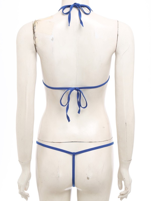 Set Include: 1Pc Bra Top, 1Pc T-back ThongCondition: New with tagsMaterial: 95% Polyester, 5% SpandexFeatures:Made from a blend of polyester and spandex, it offers excellent stretch and durability, providing a comfortable and snug fit for various body types.The no-coverage micro bikini design is super trendy, exuding a bold and spicy vibe that is in line with the latest fashion trends.The O-ring linked and lace-up details add a touch of edginess and uniqueness, making the swimwear stand out from the ordinary.The 2-piece set of bra top and T-back thong creates a complete and alluring look, enhancing the wearer's femininity and charm.Suitable for a wide range of occasions, including intimate activities, theme parties, cosplay, beach outings, and even as nightwear for a romantic evening.