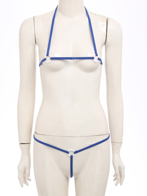 Women's No Coverage Micro Bikini O-ring Lace-up 2-Piece Lingerie Swimwear Set