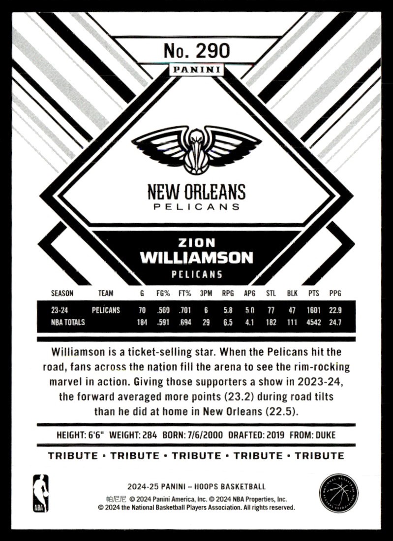 2024-25 Hoops Zion Williamson New Orleans Pelicans #290