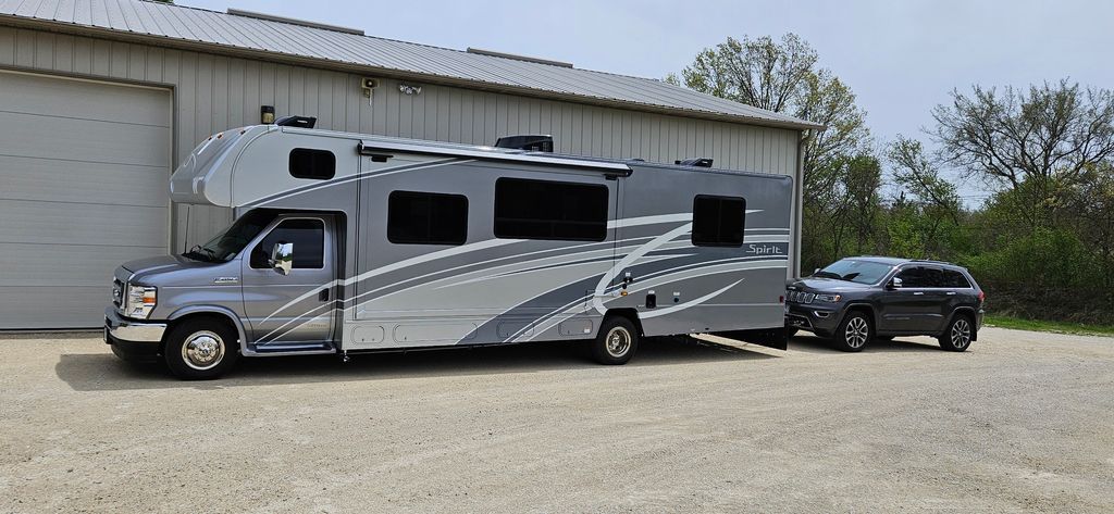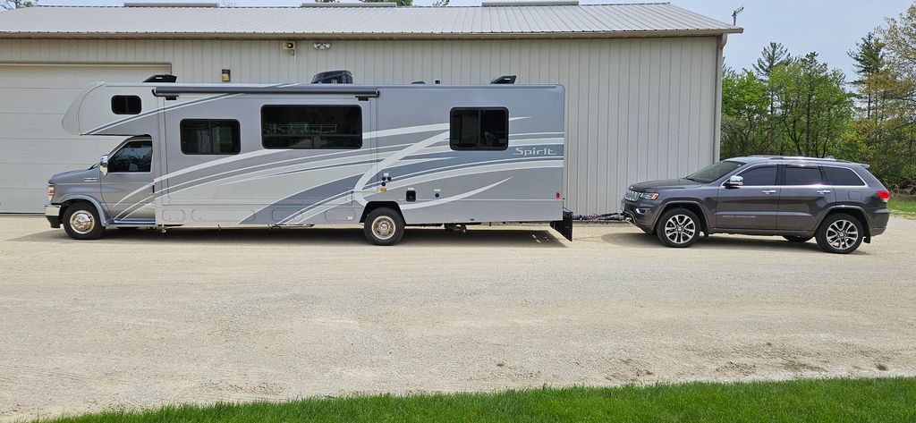 Additional Features: Oven 2 TVs CD/Stereo Cable Ready Generator Furnace Smoke Detector Hitch Backup Camera Cruise Control CO Detector No Pets No Smoking Roadmaster heavy-duty front and rear sway bars Koni heavy-duty shocks Roadmaster steering stabilizer Custom running boards for easier entry PermaPlate protective paint coating Hard-wired Hughes surge protector Professionally installed window tint WeatherTech floor mats Two Fantastic roof fans with vent covers Upgraded air conditioning performance Interior light dimmer switches Theater-style reclining sofa Adjustable split queen bed Custom built rock guard made out of stainless steel to protect your tow vehicle RV will tow midsize vehicles very well with no problem with heavy towing rate and powerful engine