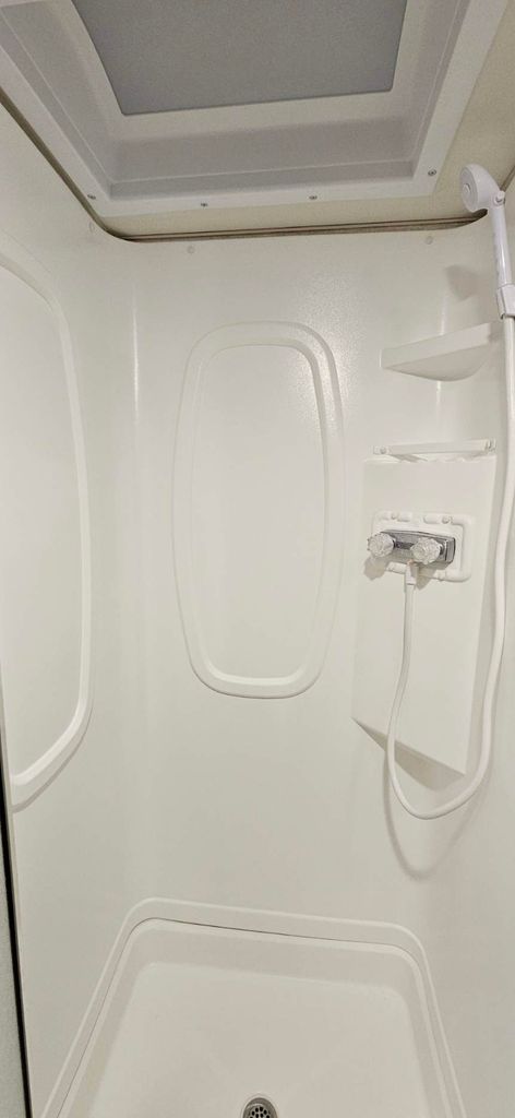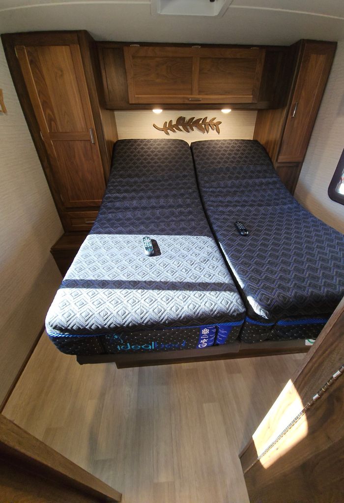 At the rear, the private bedroom features a walk-around queen bed, wardrobe storage, and privacy, creating a peaceful retreat after long days of adventure. The full bathroom offers a shower, vanity, and roomy amenities that feel right at home.