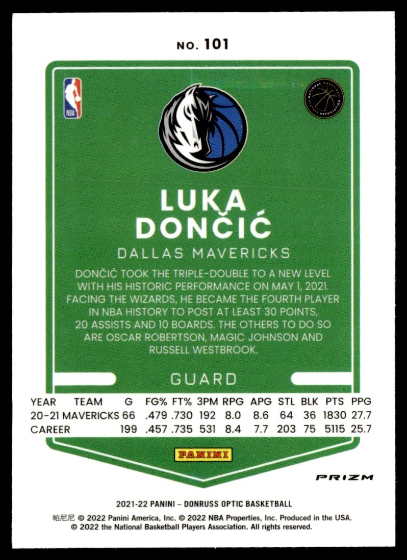 2021-22 Donruss Optic Blue Luka Doncic Dallas Mavericks #101