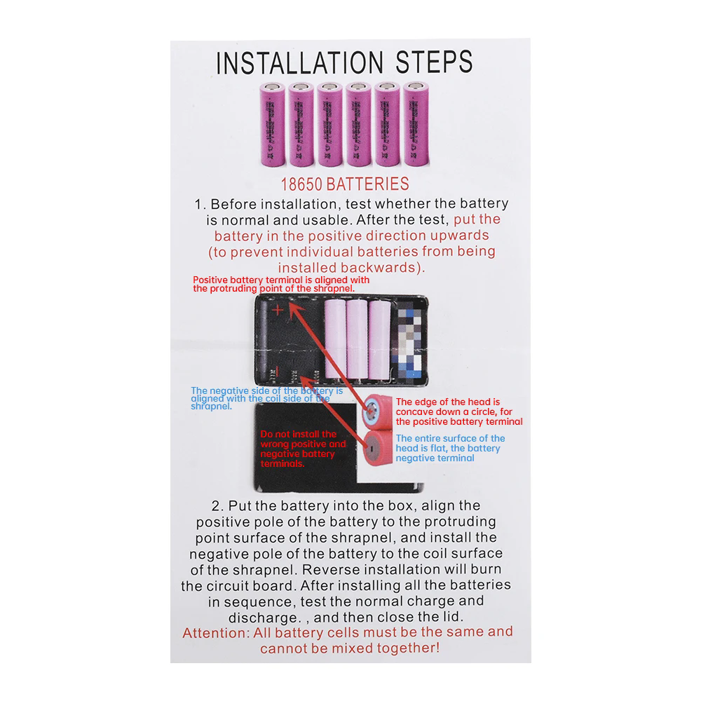 Note that the capacity of each battery must be the same, do not put the reverse