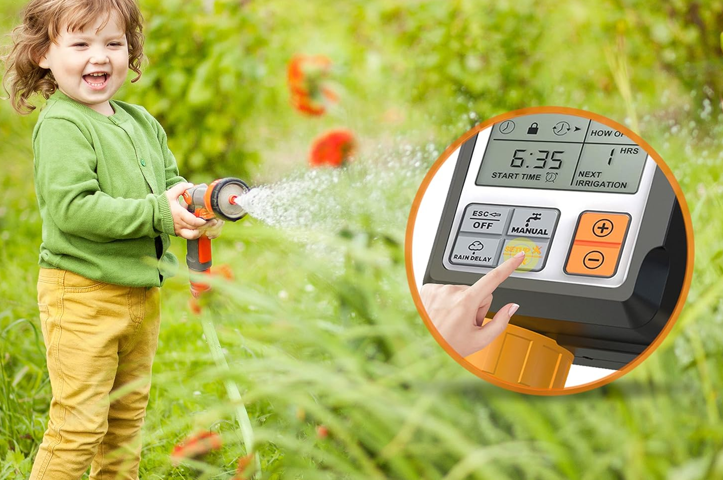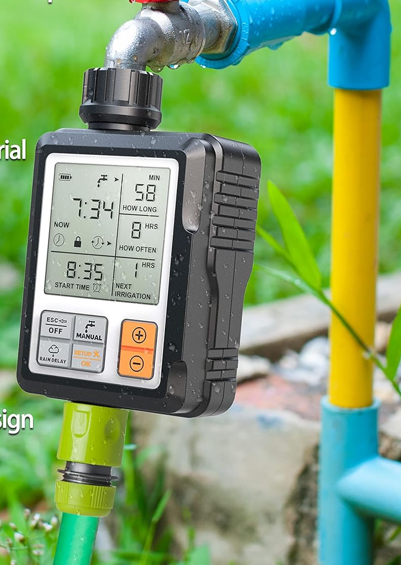 ✅ Robuste et résistant aux intempéries - Conçu pour durer des années. Son boîtier renforcé et étanche (IPX5) protège le mécanisme de la pluie et du soleil brûlant, garantissant une fiabilité tout au long de la saison.