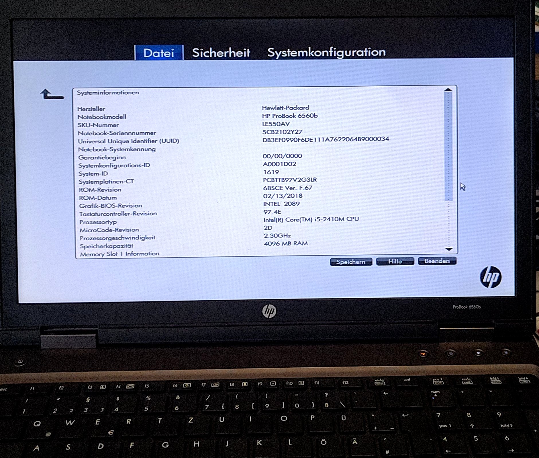 HP ProBook 6560b Intel Core i5-2410M Ersatzteilspender