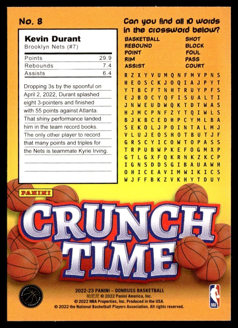 2022-23 Donruss Crunch Time Diamond Kevin Durant Brooklyn Nets #8