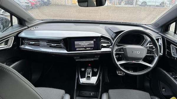 Experience the perfect blend of modern style, impressive electric efficiency and Audi's renowned build quality with this outstanding 2022 Audi Q4 e-tron 40 S Line. Designed to make every journey smoother, quieter and more cost effective, the Q4 e-tron offers all the practicality of a spacious SUV with the low running costs of fully electric driving.Powered by a refined 150kW motor and an 82kWh battery, the Q4 e-tron delivers strong, effortless performance with excellent real world range, ideal for both commuting and long distance family trips. With zero tailpipe emissions and significantly reduced running costs compared with petrol or diesel SUVs, it's a smart, future ready choice that doesn't compromise on comfort or reliability.Inside, the cabin combines premium Audi design with superb technology. Built in satellite navigation ensures every journey is simple and stress free, while Apple CarPlay, DAB radio and Bluetooth keep you seamlessly connected and entertained. Heated front seats add a touch of luxury on colder mornings, and the crisp climate control system ensures year round comfort for all passengers.Practicality is a strong point too, thanks to generous interior space, excellent visibility and the reassurance of Audi engineering. Cruise control makes longer drives effortless, and the automatic gearbox delivers a smooth, refined feel throughout every mile.Stylish, efficient and exceptionally well equipped, this 2022 Audi Q4 e-tron S Line is the perfect premium electric SUV for drivers who want quality, practicality and outstanding value in one beautifully designed package..Air Conditioning, Climate Control, Metallic Paint, Cruise Control, Satellite Navigation, Alloy Wheels, Heated Seats, DAB Radio, Bluetooth, Parking Sensors, Low Mileage, Full Service History, USB, Keyless Entry-Push Button Start, Apple-Android Play, Auto Lights, Electric Folding Mirrors, Pre Crash Prevention& Rain Sensors, Front/rear floor mats, 135kW DC charging capability, Side and rear window privacy glass, Acoustic glass windscreen, Rear wiper, Bluetooth interface, Audi Smartphone Interface with wireless functionality, Lane departure warning system, Audi drive select, Camera based traffic sign recognition, Swerve assist and turn assist, Power operated tailgate, Audi Virtual Cockpit - 10.25"" display, MMI Navigation Plus with high resolution 11.6 inch touchscreen colour display, Body coloured door mirrors, Frameless auto dimming interior rear view mirror