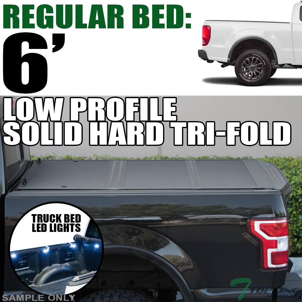 Tonneau Cover:Low Profile Solid Hard Tri-Fold Style Aluminum Panel & Frames The Width Of The Cover Will Not Extend And Cover Both Bed Rails Comes With Heavy Duty Weather Strip All Around, Provides A Tight Seal To Prevent Dust, Rain And Snow From Getting Into The Bed Of The Truck Comes With Water Drain Hose To Discharge Water And Prevent Water Accumulating Into The Bed Comes With A Safety Buckle Feature To Keep The Panels In Place After Completely Open Weight Rating Up To 300 LBs Slim & Lightweight Fold Panels Secure & Simple Lock Function With A Latch Texture Surface Finished Fold Panels Twist Clamp Design Provides Tension & Security - On Design With Easy To Follow Instructions - No Drilling! Clamps Can Only Be Accessed By Lowering The Tailgate, Adding More Protection To Your Cargo Compatible With Chase Racks Warranty On Craftsmanship Only