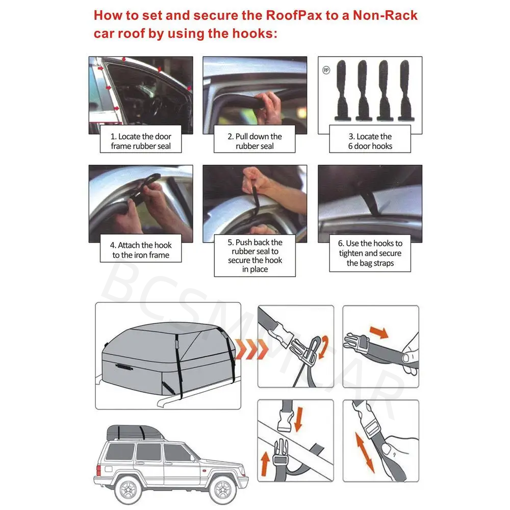 Looking for a reliable and spacious car top carrier? Our product has got you covered! With a great waterproof effect and double-reinforced strap seams, it ensures your items stay secure and dry. It's firmly fixed, giving you peace of mind on any road trip.