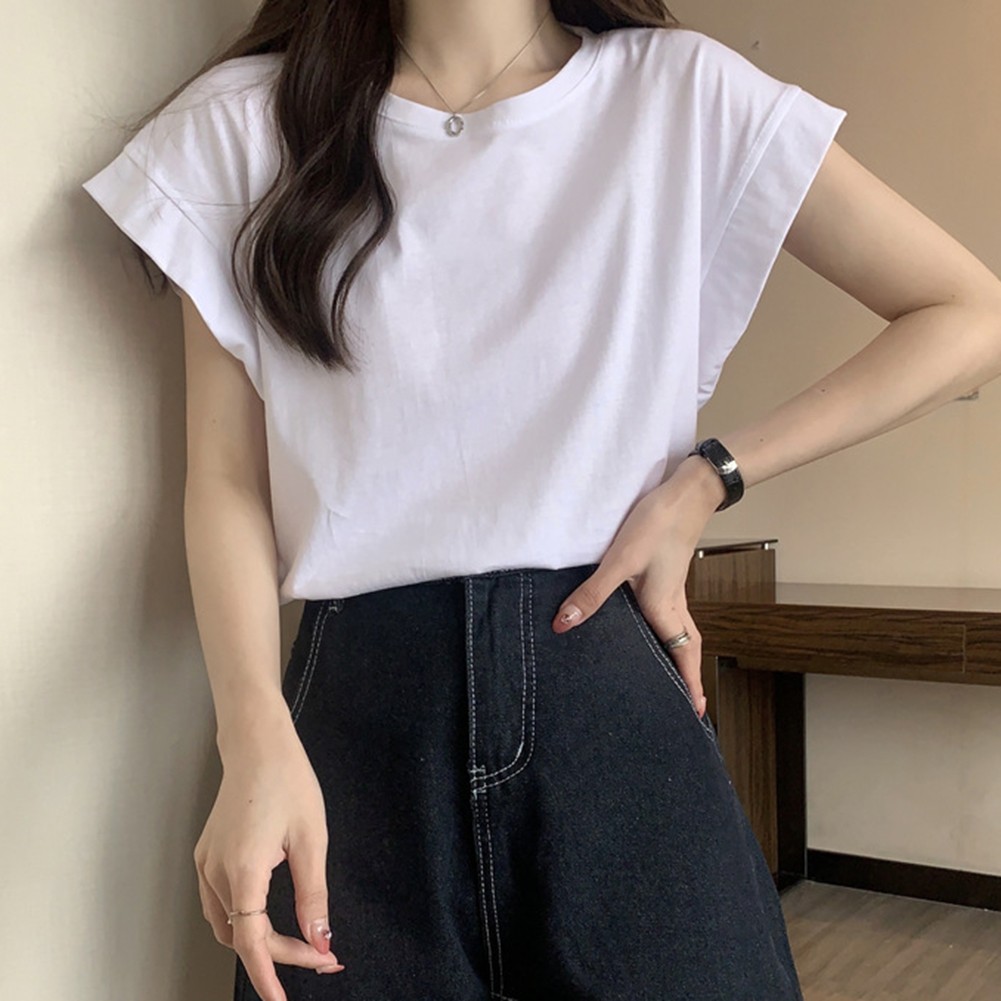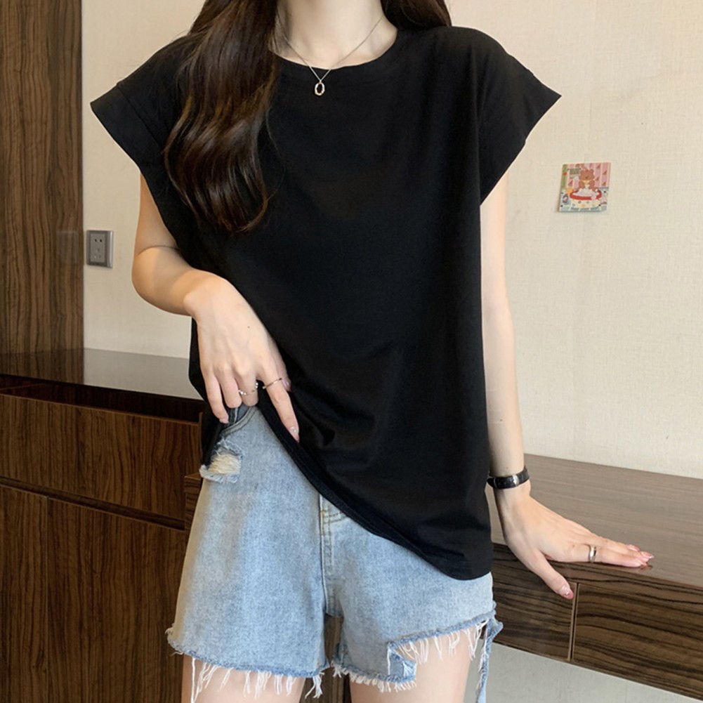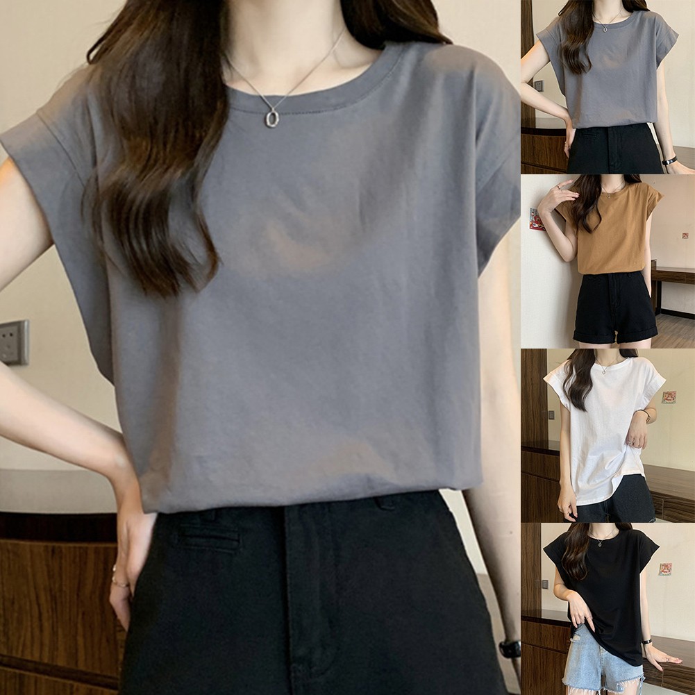 T-shirts sans manches été femme couleur unie coupe ample hauts décontractés