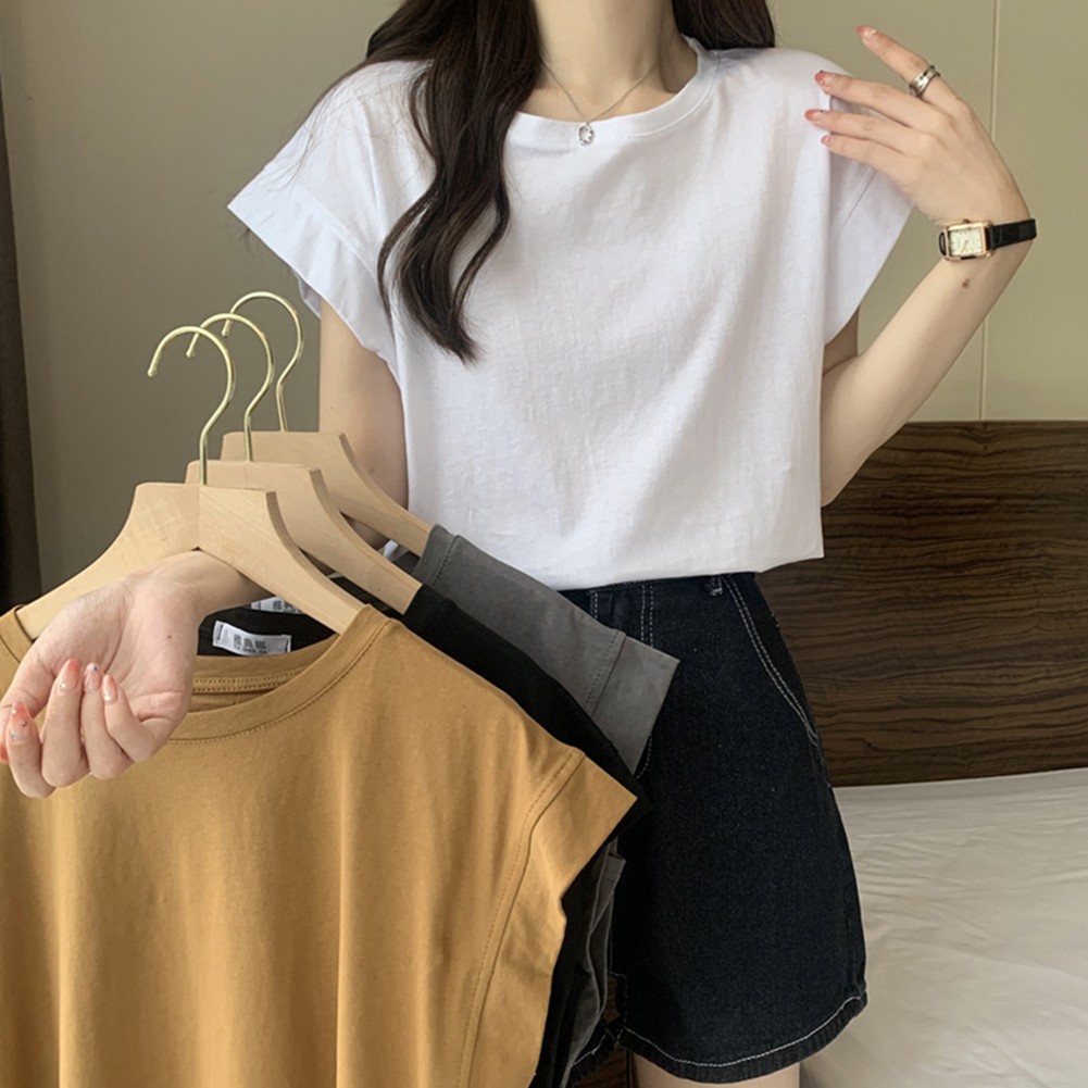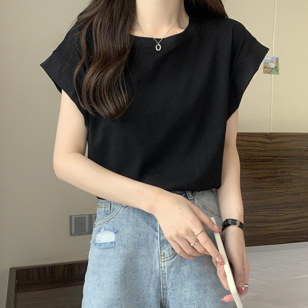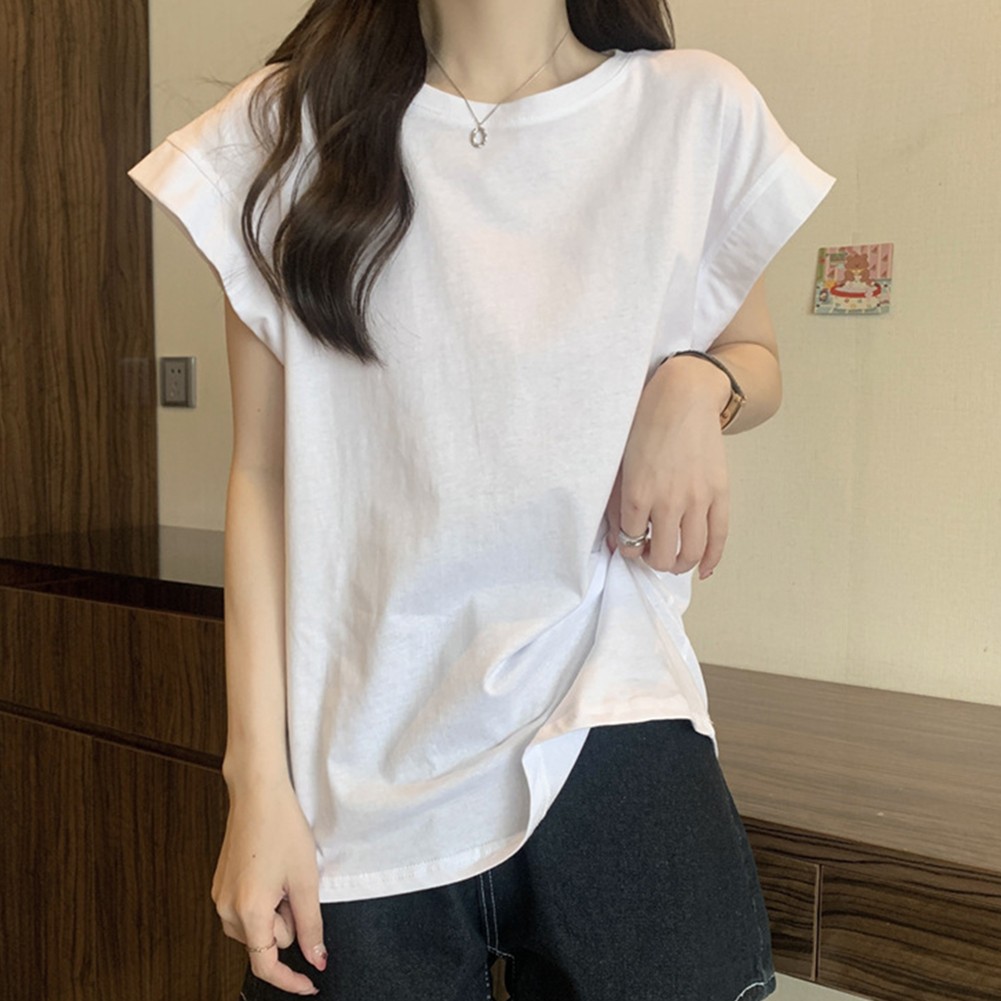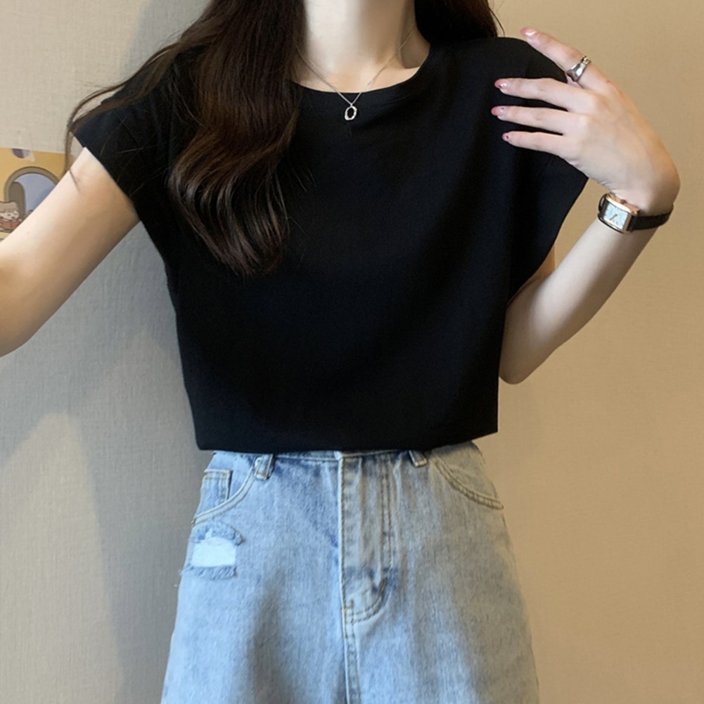 T-shirts sans manches été femme couleur unie coupe ample hauts décontractés