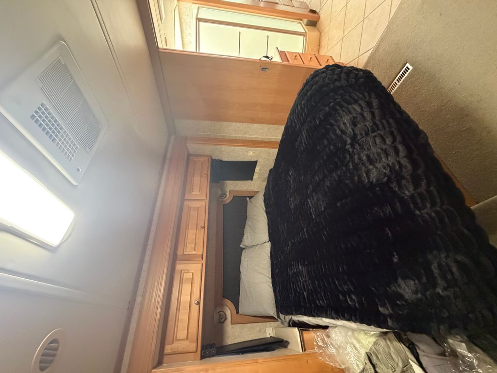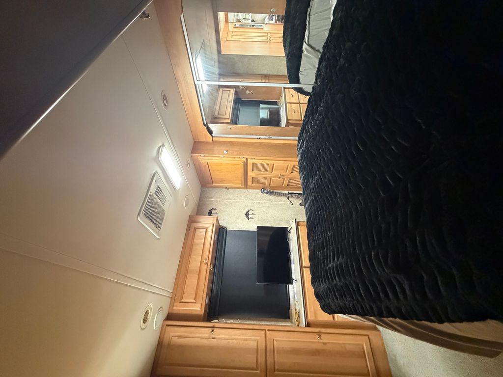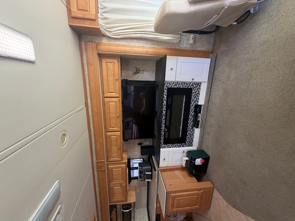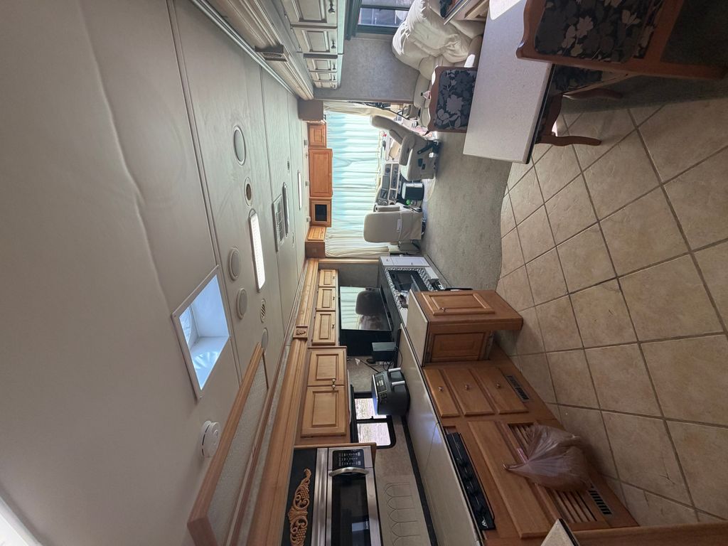 Bedroom: Queen bed slide with nightstands, rear wardrobe. Living Area: .2 powered recliner, Fireplace eith televated 48" t.v Kitchen: 3-burner range, convection microwave, and booth dinette or table with chairs.