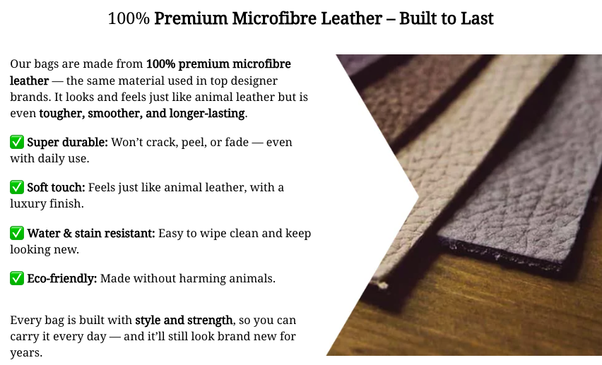 Certified 100% Premium microfibre leather made to create a superior quality bag that has unique characteristics and a luxury feel that stands out.