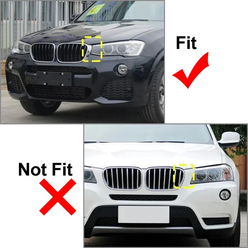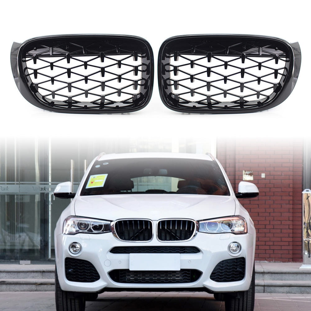 For BMW X3 F25 /X4 F26 2014 2015 2016 2017 Diamond Meteor Latest Style Front Kidney Grille Features: Easy to install, No modification is required,a direct replacement for the worn grille. 100% Brand New Car Front Grille Durable material resistant to UV, water, dirt, grease, salt, mild acid and oil Light weight and durability This is High quality of ABS material Specifications: Type: Diamond Style Front Grill Grille Style: Mesh Material: Great ABS Color: Gloss Black Surface Finish: Painted Quality: 1 Pair (left & right) Part Number: Left: 51117338571, 51137367421 Fitment: Fit for BMW X3 F25 2014-2017 Facelift Package include: 1 Pair of Car Grilles Note: -- Please confirm the product is suitable for your car before purchase,models compatibility table for reference purposes only! -- Due to the difference between different monitors, the picture may not reflect the actual color of the item. -- Professional Installation is Highly Recommended, No instruction included with the package.