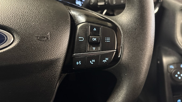 .Front floor mats in velour, Quickclear heated windscreen, Electric front windows/one touch facility, Rear wiper, Rain sensing wipers and auto dimming rear view mirror, Electronic stability control with hill start assist, Standard suspension, Electric power steering, Cruise control with adjustable speed limiter, Selectable drive modes (Normal, Sport, Track), Lane keep assist, Speed limiter, Lane keeping aid, Ford easy fuel, Trip computer, 4.2"" TFT Ice blue illumination analogue cluster, Ford SYNC 2.5 with DAB radio, 8"" screen, emergency assistance, Apple car play/Android auto, 2x USB, 6 speakers, Body coloured electrically operated with side indicators, 6 speakers, Body colour bumpers, High gloss chrome grille surround, Rear side wing doors, LED headlights with LED daytime running light and integrated fog light, 3rd brake light, Automatic headlights, Manual air conditioning, Cloth upholstery with metal grey stitching, Tyre pressure monitoring system