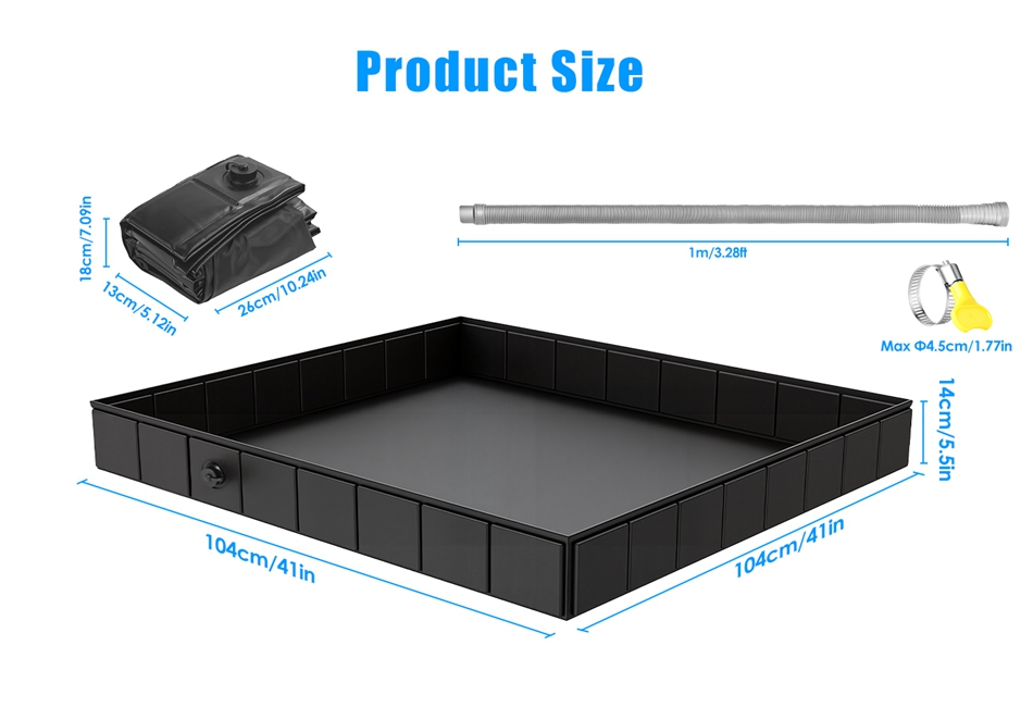 - Unfolded Shower Pan Size: 104x104x14cm/41x41x5.5in