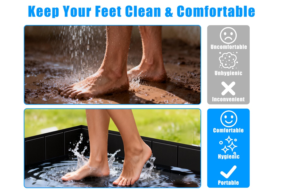 - Ultra-Compact Foldable Design:Designed for portability,this collapsible shower basin folds down to a compact 10.24 x 7.09 x 5.12-inch size. The space-saving design makes it easy to store in your vehicle,backpack,or gear bag and ready to use whenever needed.