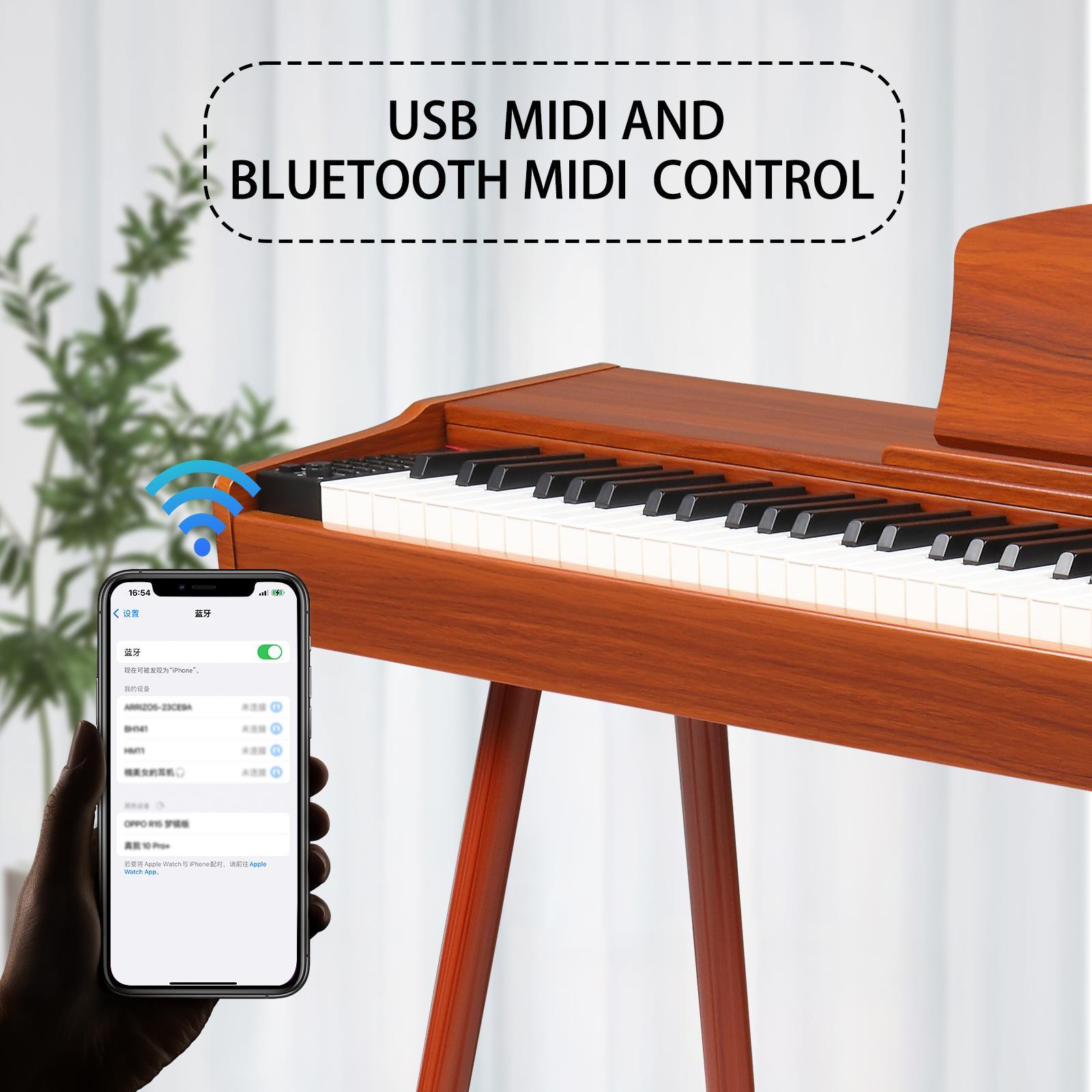 6. After the piano is turned on, bluetooth will be automatically turned on. The mobile phone can search the MIDI Bluetooth signal of this piano. After the connection, the playing software on the mobile phone can realize the wireless connection with the piano.