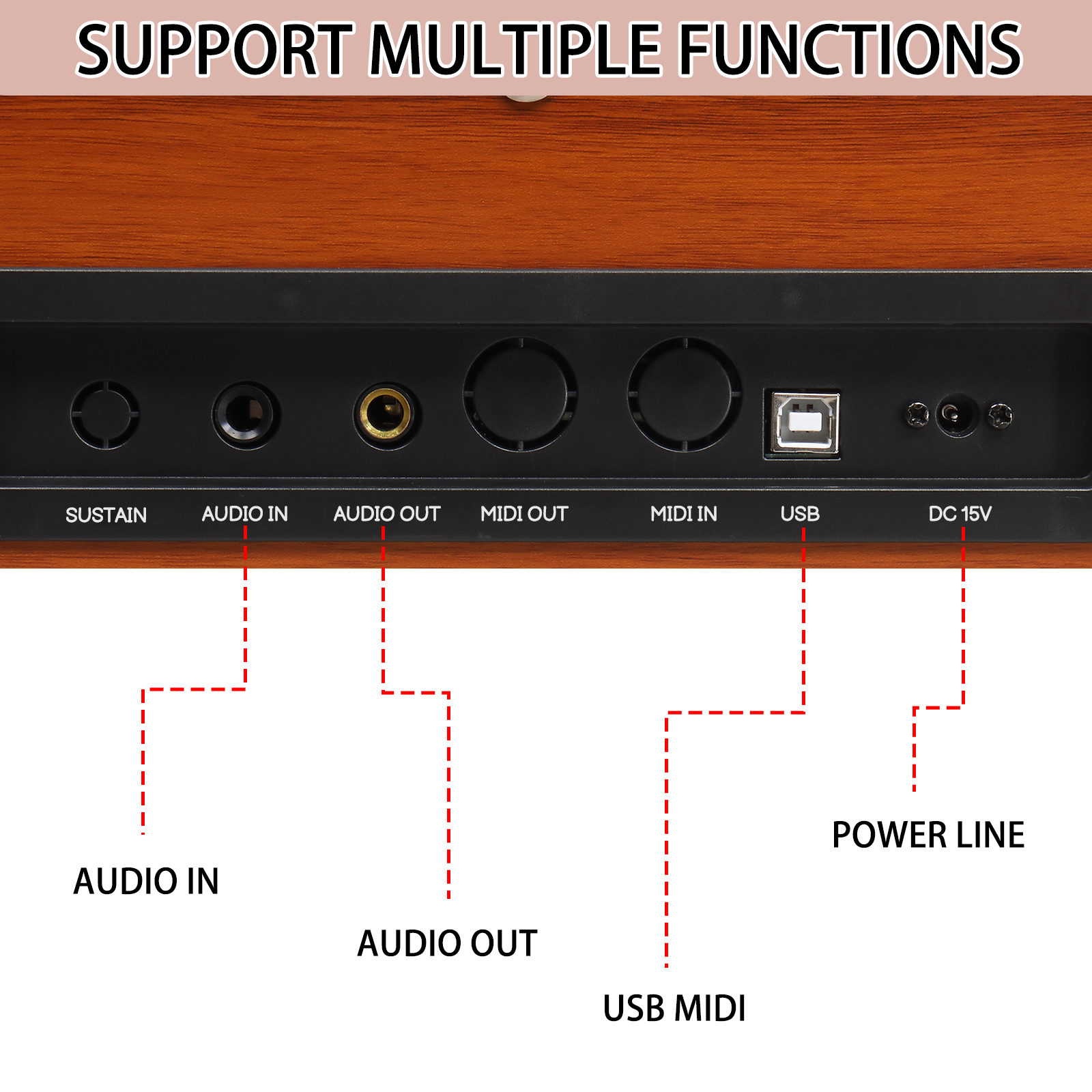 5. Dual Bluetooth,Audio Bluetooth and MIDI Bluetooth,Connect a COMPUTER or tablet with a USB cable for multimedia interaction.