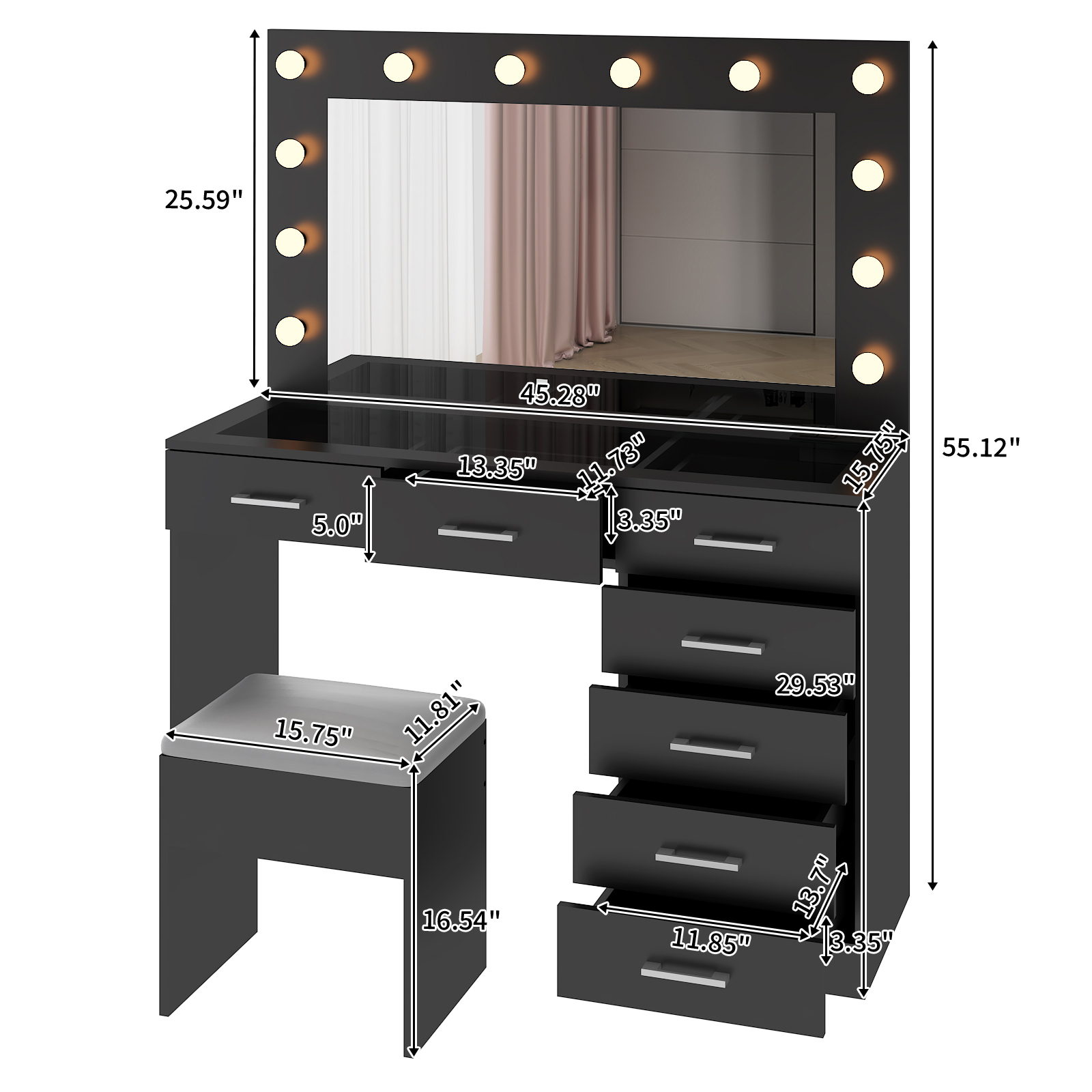 3. Ample Storage with 7 Drawers: Organize and store all your makeup, skincare products, hairstyling tools, jewelry, and accessories in these spacious drawers, keeping everything neat and within reach.