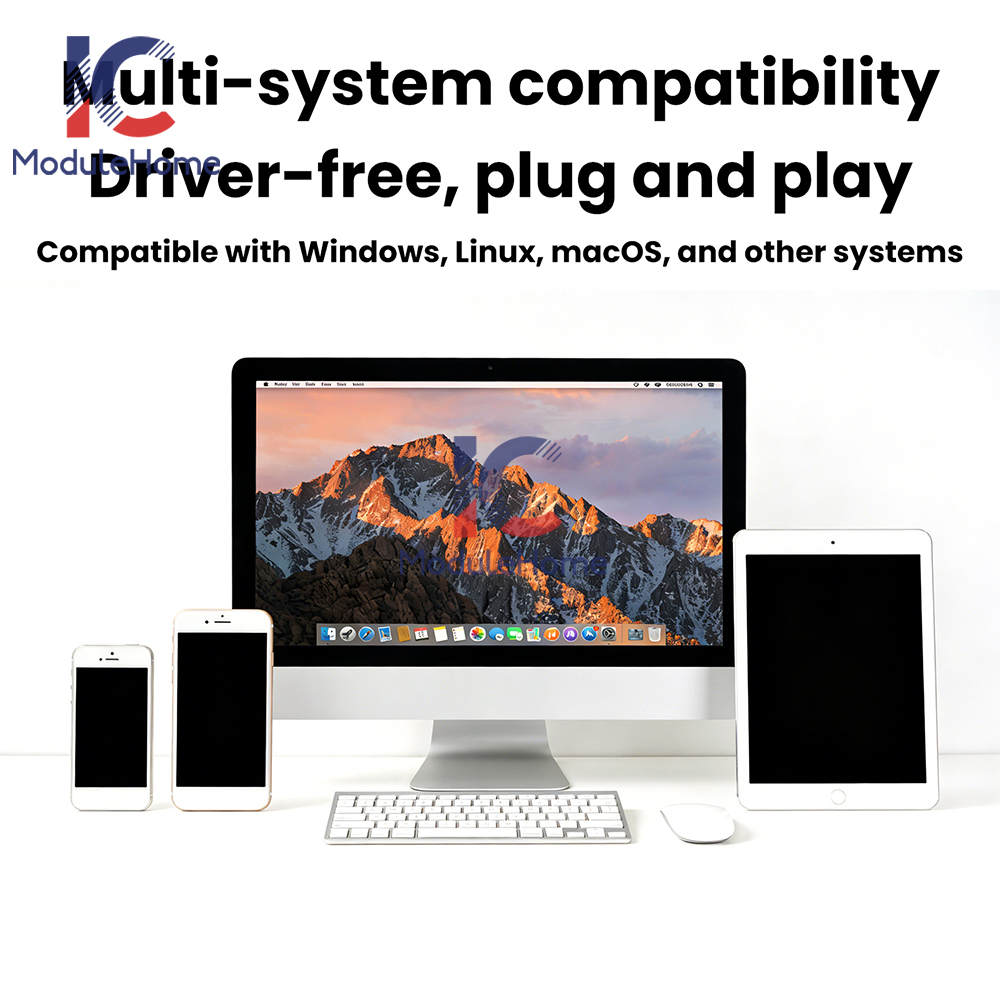 5. Multi-System Compatibility: Plug-and-play operation without drivers; compatible with Windows, Linux, and macOS.
