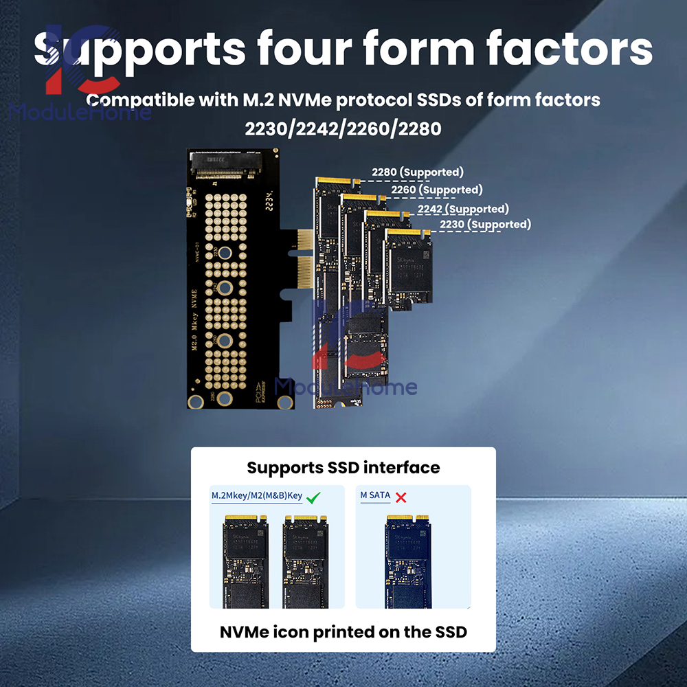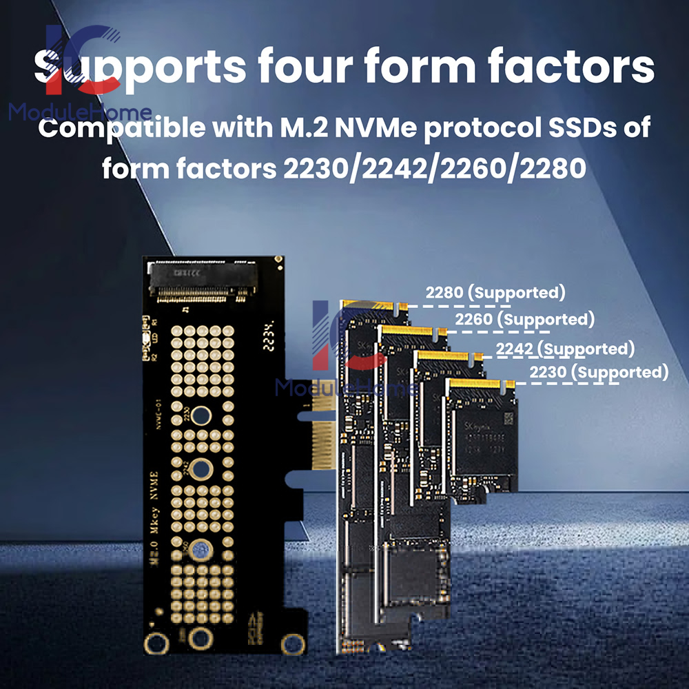 2. Supports four sizes: Compatible with 2230/2242/2260/2280 M.2 NVMe protocol drives.