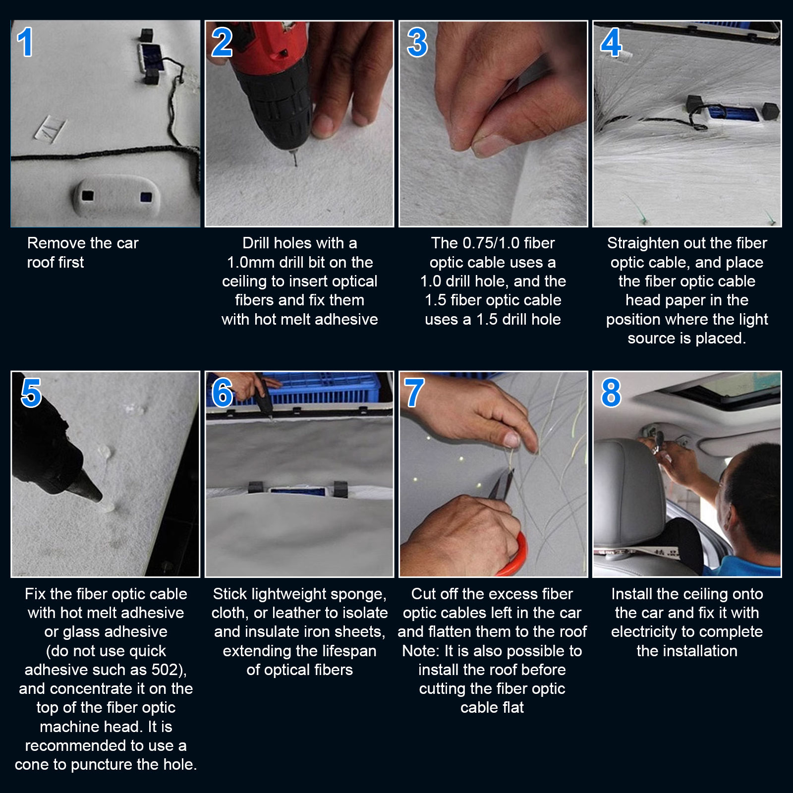 1. The ceiling star can make your car romantic and unique, comparable to top luxury cars, but requires some practical installation skills. This set is only recommended for use in the roofs of small and medium-sized cars.