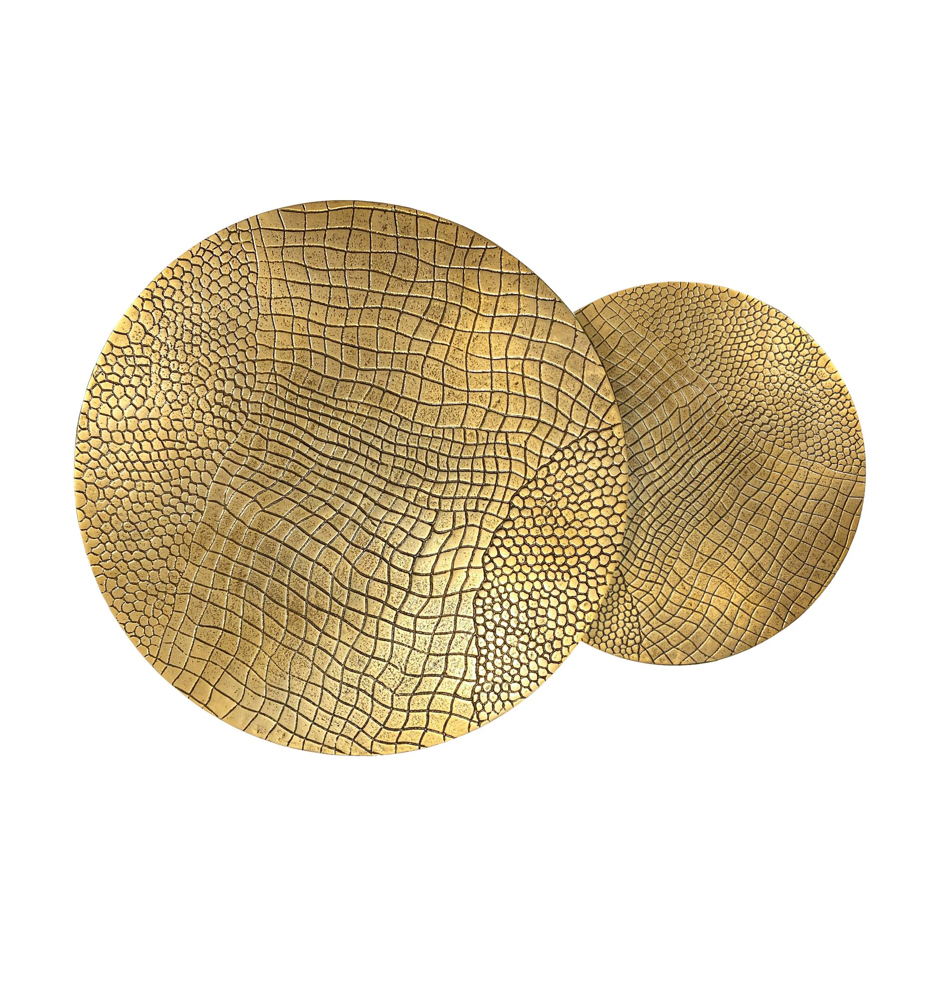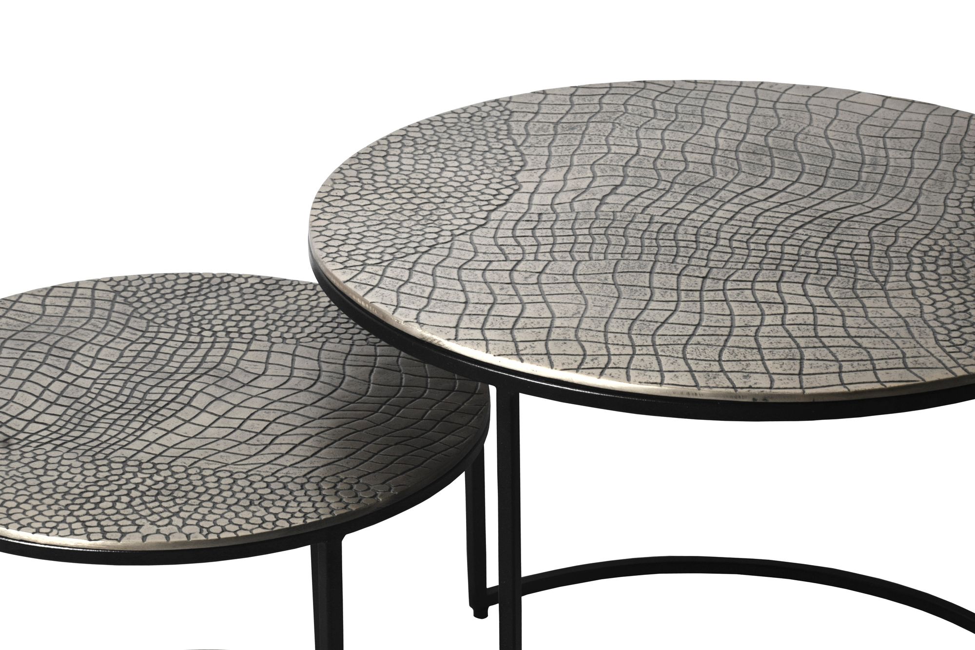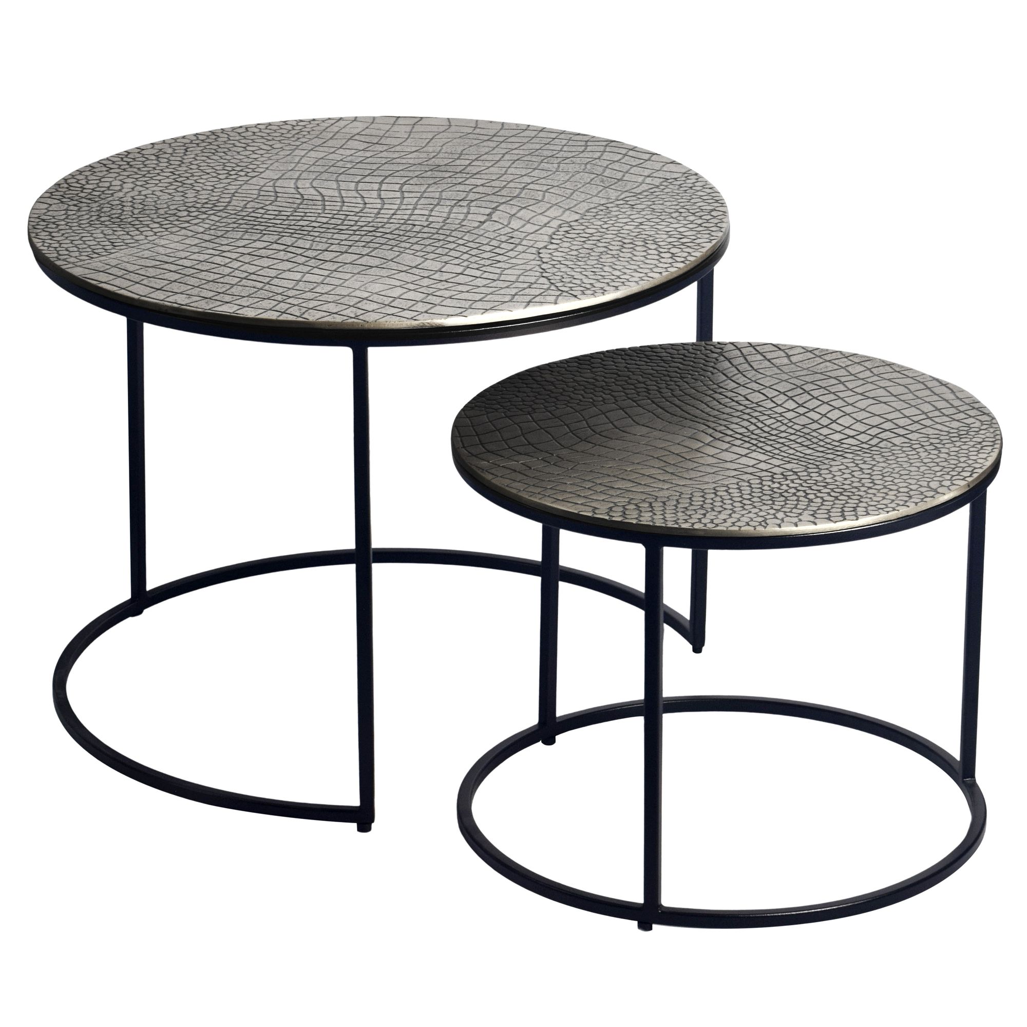FineBuy Table gigogne en métal, lot de 2 rondes - Table basse plateaux en aluminium avec motif - Table d'appoint canapé en alu moderne - Table de salon piètement en fer fait main
