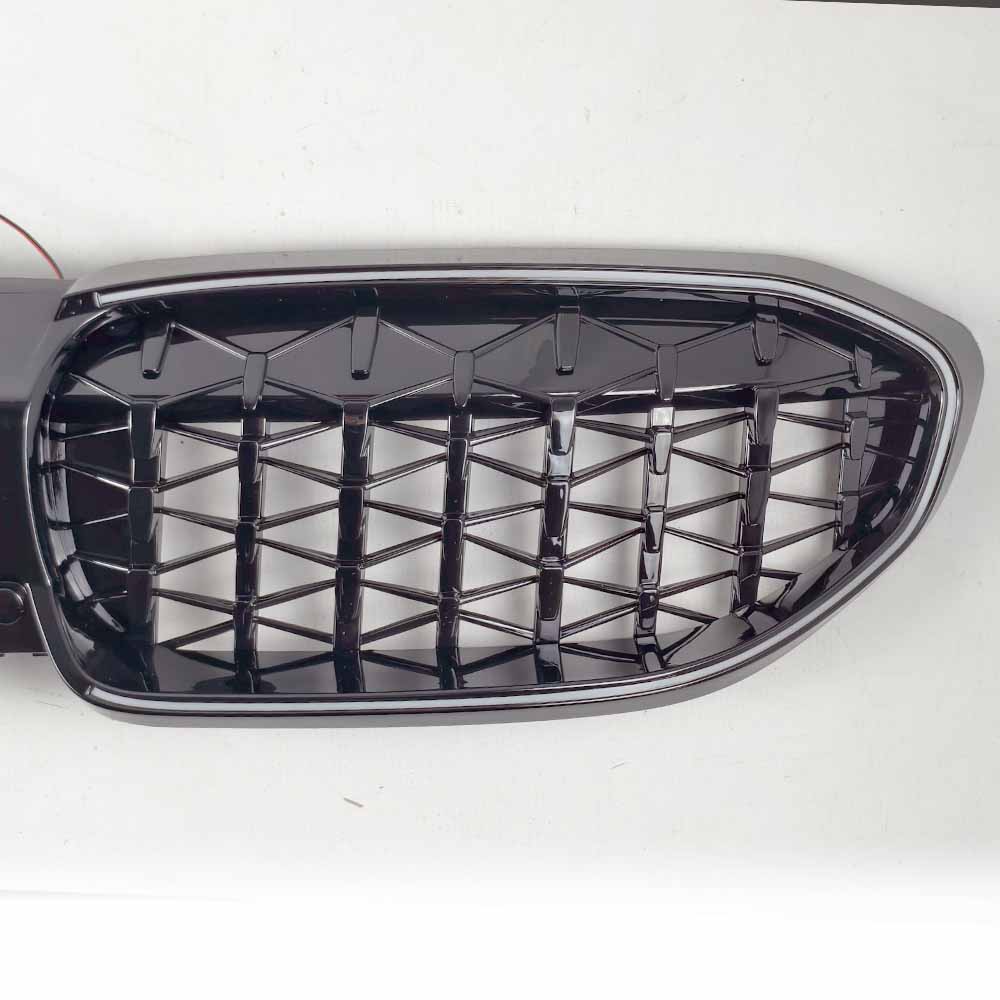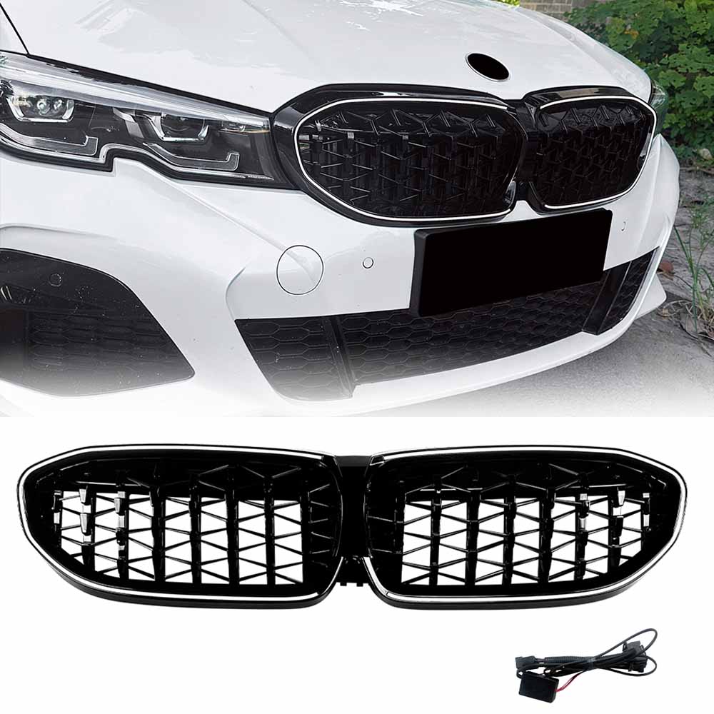 Glänzend Schwarz Frontgrill Kühlergrill im Diamant-Design (M340i) mit Kameraöffnung, mit LED-Licht für BMW 3er G20 (Vor-Facelift, 2019–2022)