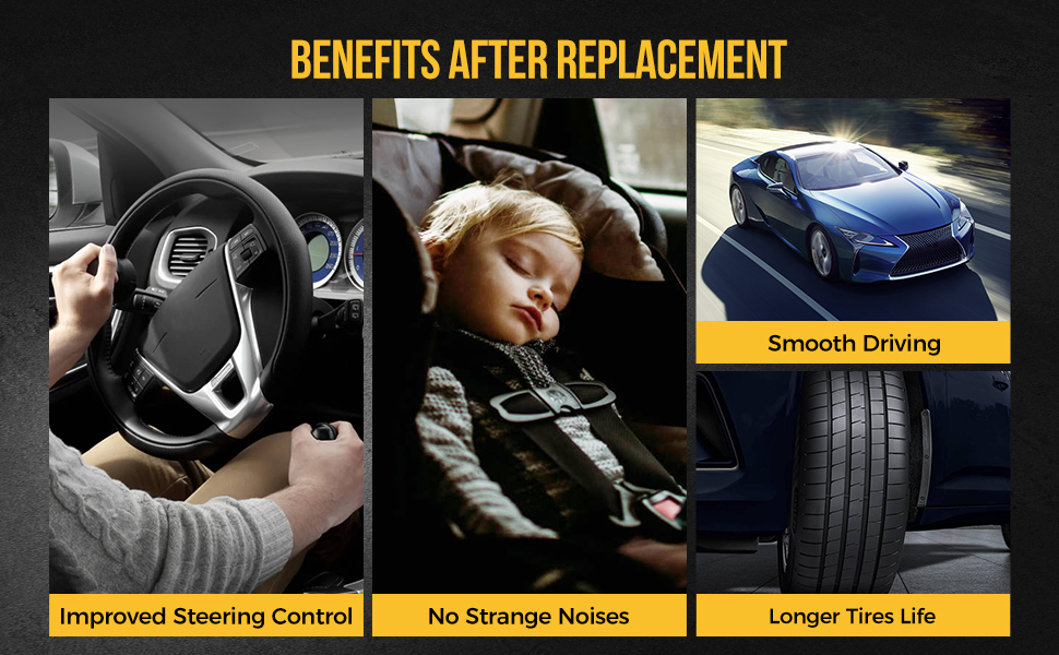 3.Improve ride comfort: Pre-installed rubber bushings effectively help reduce the road noise and vibration, enabling you to enjoy a smooth and controlled ride during cornering and over bumps.