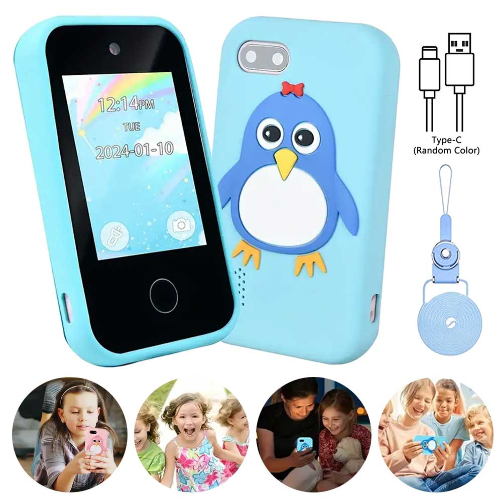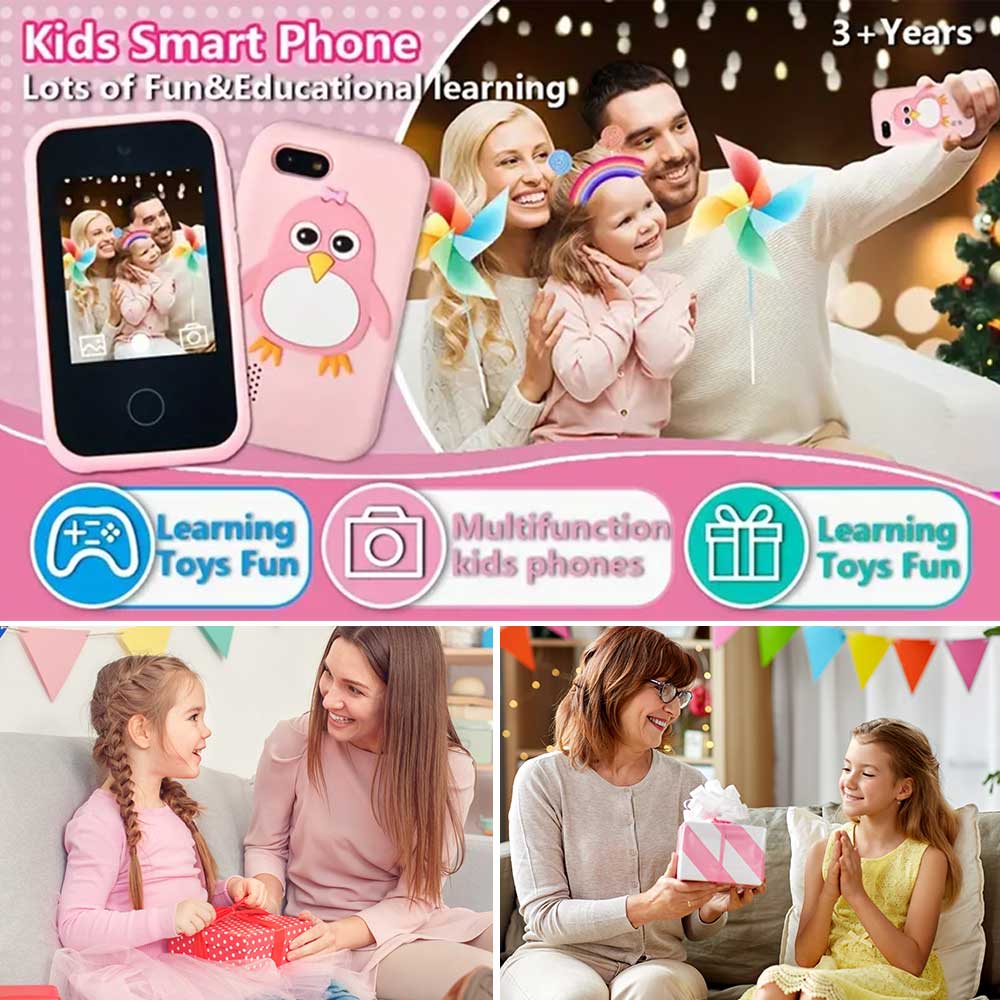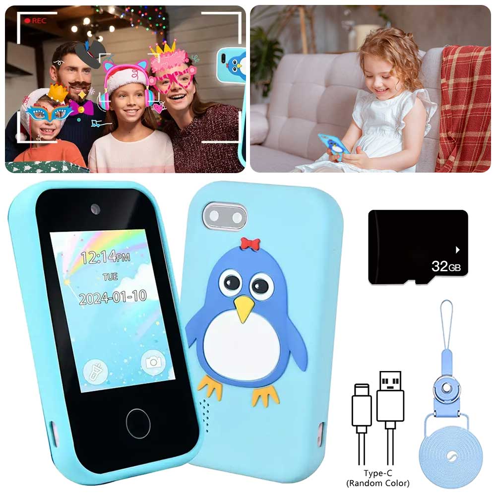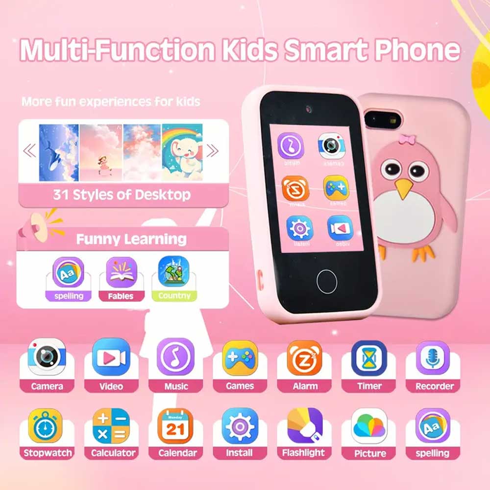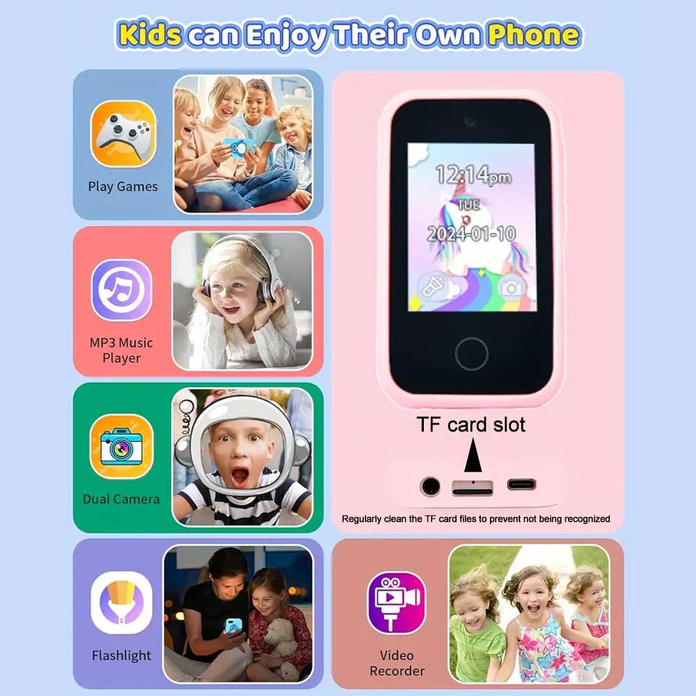 【Upgraded Touchscreen Kids Cell Phone】Kids smartphone with selfie camera, MP3 player, games, voice recorder, country and daily guide, alarm,