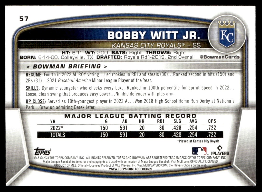 2023 Bowman Bobby Witt Jr. Kansas City Royals #57