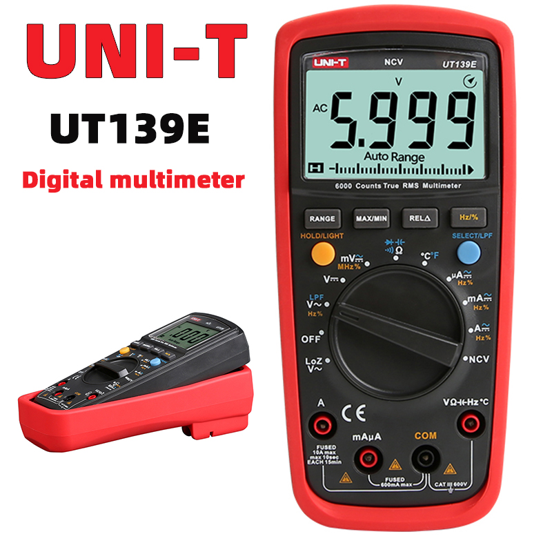 The UT139E True Rms multimeter is a multimeter specifically designed for the electrical industry. The features of this series include: equipped with a low-pass filter (LPF) function, which can filter out signals such as carrier frequency interference and harmonic interference voltage caused by the superposition of sine waves; Configuring LoZ(Low Impedance Input) can be used to test power frequency false voltage. Configure 31 simulation bars to facilitate quick observation of the changing process of test results. The UT139E complies with the CATIII 600V safety class design requirements and has obtained cETLus certification.