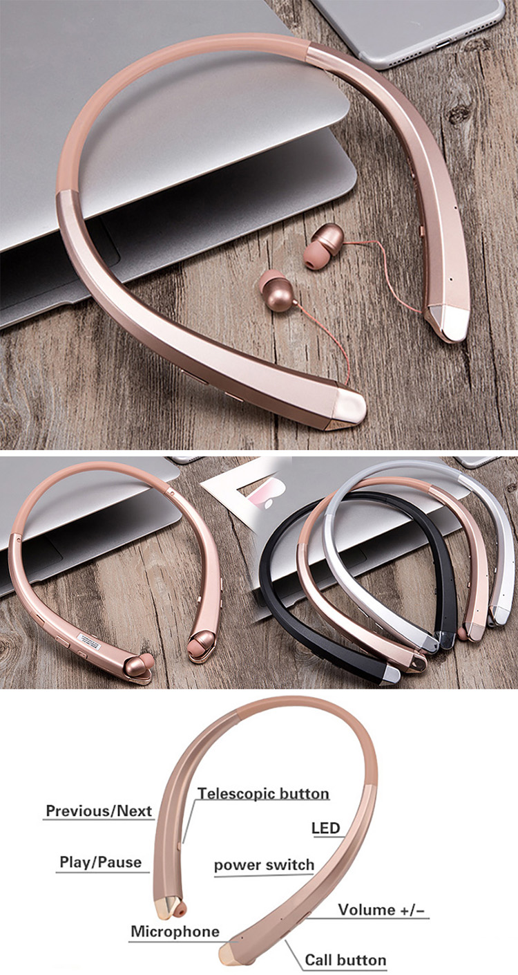 New HBS910 portable sports bluetooth headset hanging neck wireless sports 4.1 in-ear hard hanging headset for LG Iphone Xiaomi
