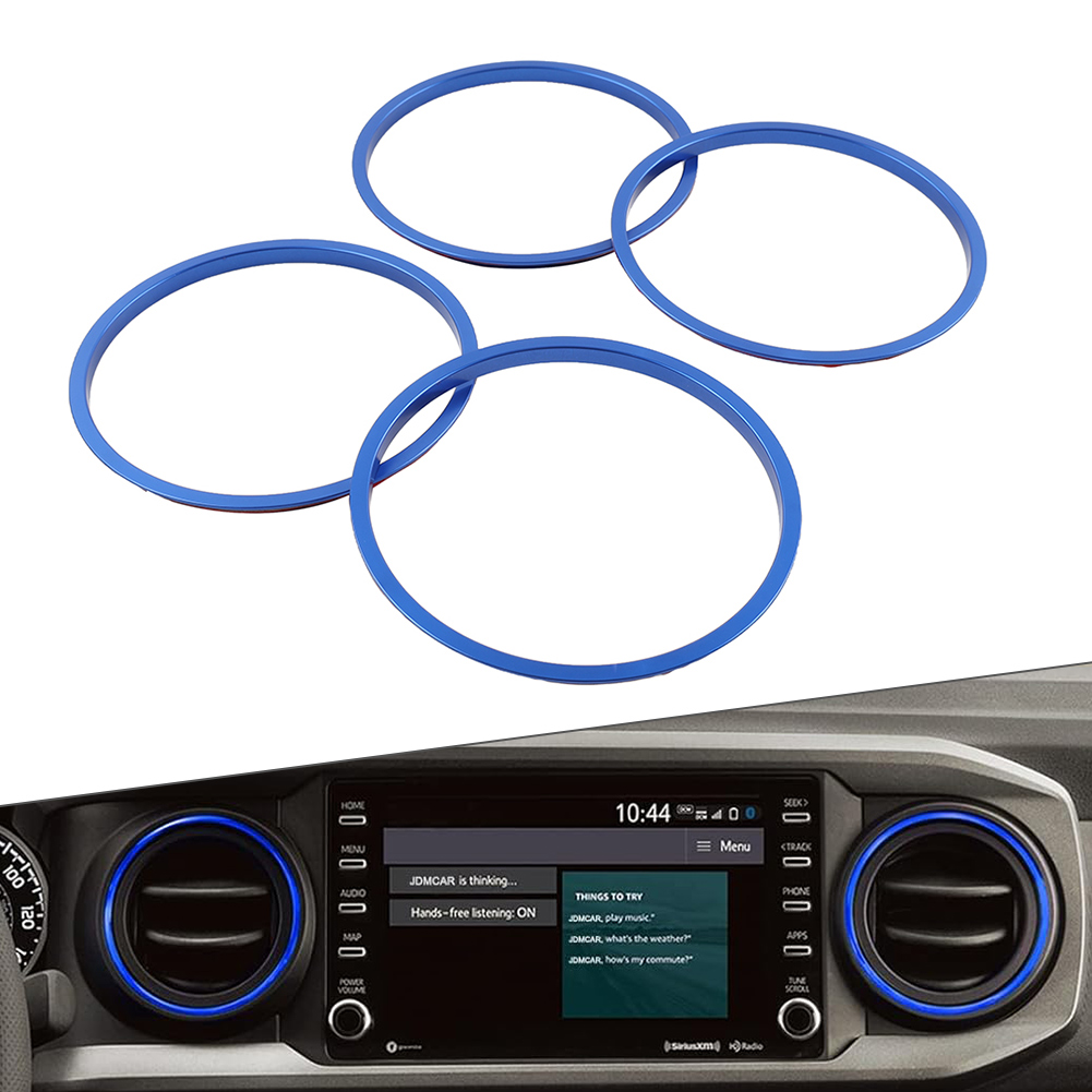 AC Outer Vent Rings Trim Covers For Toyota Tacoma 2016-2022 Features: 1. Exquisite workmanship, take you different luxury feelings. 2. These decorative rings not only add a touch of style but also provide additional protection to your vehicle's A/C vents. 3. Crafted from high-quality aluminum alloy, these vent rings feature a meticulous finish, offering both durability and an eye-catching appearance. 4. Simple installation with double-sided tape—just peel and stick. For best results, clean the air outlet thoroughly before applying the rings to ensure strong adhesion. Specification: Condition: Brand New (Never Been Used or Installed) Material: Premium Aluminum Alloy Color: Blue Fitment Type: Performance/Custom Placement on Vehicle: Front Fitment: For Toyota Tacoma 2016-2022 Compatibility is for reference only. Different cars have different configurations. Please kindly check our item description, photos and sizes, make sure this item fit for your car. Packing Included: 4 Pcs Air Conditioner Outer Vent Rings Installation Tips: 1. Please clean the area and eliminates the substance before mounting this product. 2. To check the installation area according to the vehicle with this product first and then release the back of tape paper is removed. In winter or cold area, the adhesive should be slightly heated before installation. After heating, the stability will be greatly improved. If the temperature is below 20 degrees Celsius, it is necessary to heat the adhesive. 3. Products are equipped on the vehicle with exactly and use a clean cloth to press evenly is attached. 4. Products within 24 hours after installed, please avoid washing your car and touching the water. Notes: 1. Professionals install is strongly recommended to avoid trouble caused by inexperienced installer. 2. There may be slight size deviations due to manual measurement, different measuring methods and tools. 3. The real color of the item may be slightly different from the pictures shown on website caused by many factors such as brightness of your monitor and light brightness. 4. Fitted photos just for your reference, which to show the installation effect and show you which model car can be installed, the actual product is same as the detail photos, please also check the other photos carefully.
