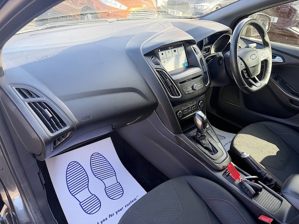 Here we have a Ford Focus ST-Line 1.0 Petrol Automatic finished in Magnetic Grey having done only 53K miles from new including the last service completed less than 50 miles ago. Comes with a long MOT until March 2027 with no advisories. This vehicle has just had a new timing belt (wet belt kit) fitted during its most recent service.Comes with 12 month AA breakdown cover and a full 6 month warranty on entire vehicle. Comes with a complete set of 3 Remote Keys.The interior and exterior of the car have been looked after very well, it starts and drives perfectly with no issues at all. Being the top of the range spec this vehicle benefits from Rear Parking Sensors, DAB Radio, CD Player, Heated Windscreen, Navigation, In car Wi-Fi, Bluetooth phone connectivity, Cruise Control, USB-C and aux capability too. Fully HPI clear. The car will be sold with extendable Warranty. We also offer Part Exchange / Delivery / Finance / HPI report available on request. Please call us on for further enquiries.=============================================================================== Why not read our AutoTrader reviews to see what our customers think about their experience here and why they choose to buy from us, =============================================================================== Please contact our sales department for the latest finance offers on this vehicle. We have a dedicated team researching our used car prices daily to make sure we offer the best value cars in the market.=============================================================================== To arrange a personal viewing of this amazing car, or if you would like a tailored video to be emailed to you then please contact us. ===============================================================================Please give us a call for directions. Our postcode for Sat Nav direction is B25 8EL • Finance subject to status, T&C's apply. ===============================================================================You can call us directly on to book an appointment or ask any further questions..18in Alloy Wheels - ST-Line - Rock Metallic,Active City Stop,Appearance Pack 2,Convenience Pack,Door Edge Protectors,Driver Assistance Pack,Magnetic,Parking Distance Sensors - Rear,Rear Privacy Glass, Colour TFT Instrument Cluster Display, Ford SYNC3 DAB Navigation System, SYNC3 with 8in Touchscreen DAB Audio System, Cruise Control with Active Speed Limiter, Ford Eco Mode - Driver Information System, Trip Computer, Tyre Pressure Monitoring System, 17in Alloy Wheels - Rock Metallic Finish, Black Exterior Trim Detailing including Upper Door Line and Headlamp Surround, Body Colour Large Rear Spoiler and Side Skirts, Body Coloured Front Styling Kit with Centre Aero Foil, Door Mirrors - Heated - Electric - Integrated Side Indicators - Body Coloured, Locking Wheel Nuts, Quickclear Heated Front Windscreen with Heated Washer Jets, Rear Bumper with Integral Body Coloured Diffuser and Honeycomb Mesh in High-Gloss Black, Spare Wheel - Mini Steel, ST Line Stainless Steel Scuff Plates, Upper and Lower Grille - High Gloss Black Honeycomb Design, Windows - Electrically Operated Front with One Touch Lowering on Drivers Side, Wipers - Standard with 6 Speed Interval Settings, Front Fog Lights, Halogen Headlights with Black Surround, Headlights - Courtesy Delay, LED Daytime Running Lights, Rear Lights - LED, Air Conditioning - Manual, Centre Console - Premium with Sliding Armrest - Covered Stowage Bins, Courtesy Light - Front and Rear Passengers - Overhead Halogen and Load Compartment, Drivers Seat Lumbar Adjust, Ford Power Starter Button, Front Floor Mats, Front Seat - Drivers Manual Height and Fore-Aft Adjustment, Front Seat - Passenger Manual Fore-Aft Adjustment, Front Seats - Sports Style, Gearshift Knob - Leather, Headliner - Black Woven, Keyless Start, Leather-Trimmed Handbrake, MyKey, Paddle Shift, Sports Style Pedals - Gear Knob and Steering Wheel, Steering Column - Rake and Reach Adjustment, Steering Wheel - 3-spoke Flat Bottom - Leather Trimmed, EPAS - Electric Power Assisted Steering, Front Suspension - Independent with MacPherson Struts and Anti-Roll Bar, Rear Suspension - Independent Control Blade Multi-Link System and Anti-Roll Bar, Suspension - Sports, Airbags - Driver and Front Passenger, Airbags - Front and Rear Side Curtain, Airbags - Front Side Impact, Alarm - Thatcham Category 1 with Volume Sensing and Perimeter, Anti-Lock Braking System - ABS with Electronic Brake Force Distribution - EBD, Electronic Stability Programme - ESP - with Traction Control and Emergency Brake Assist - EBA, Emergency Brake Warning - Automatic Hazard Warning Lights, Ford Easy-Fuel Capless Refuelling System, Hill Start Assist, IPS - Intelligent Protection System, Remote Central-Double Locking, Seats - ISOFIX Mounting Provision for Child Seats, TVC - Torque Vectoring Control