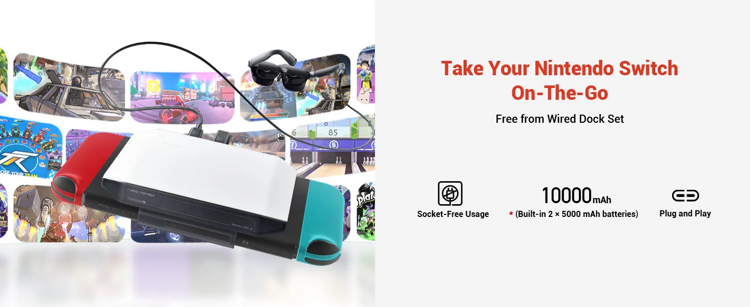 - PORTABLE POWER FOR SWITCH: (Built-in 2 × 5000 mAh batteries) Embrace the freedom of portable gaming with JoyDock – no wired dock required. Offers reverse charging for your Nintendo Switch with a built-in 10,000mAh battery.