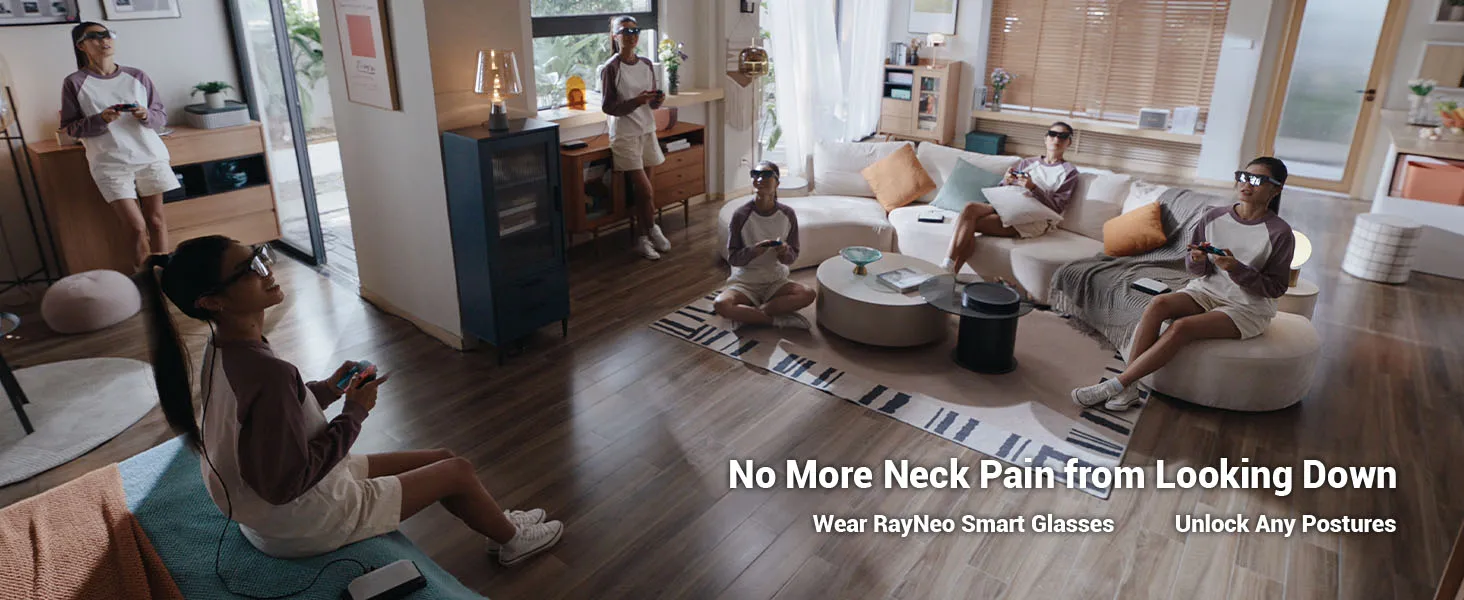 - NO MORE NECK PAIN FROM LOOKING DOWN: Unlock any posture as you like for a comfortable gaming experience. Squint no more with JoyDock and RayNeo Air 2. Lean back, relax, and game big in total comfort in your preferred posture.