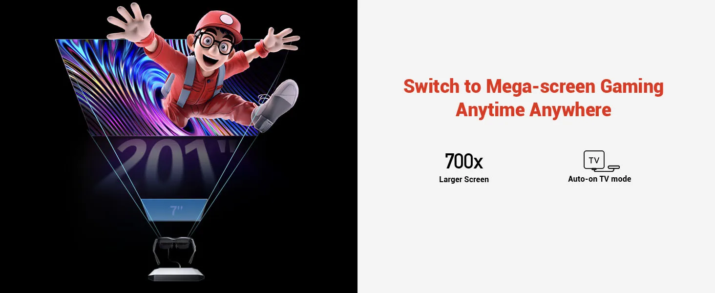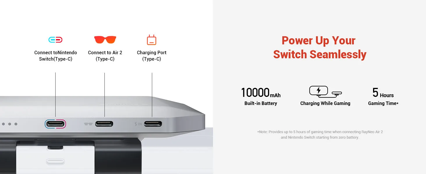 - RAYNEO AR BIG-SCREEN GAMING: Connect JoyDock to your Nintendo Switch for an instant gaming world. (Glasses not included) Immerse in a massive 201'' screen experience with seamless TV mode. Enjoy lag-free gaming thanks to a blazing-fast 120Hz refresh rate.