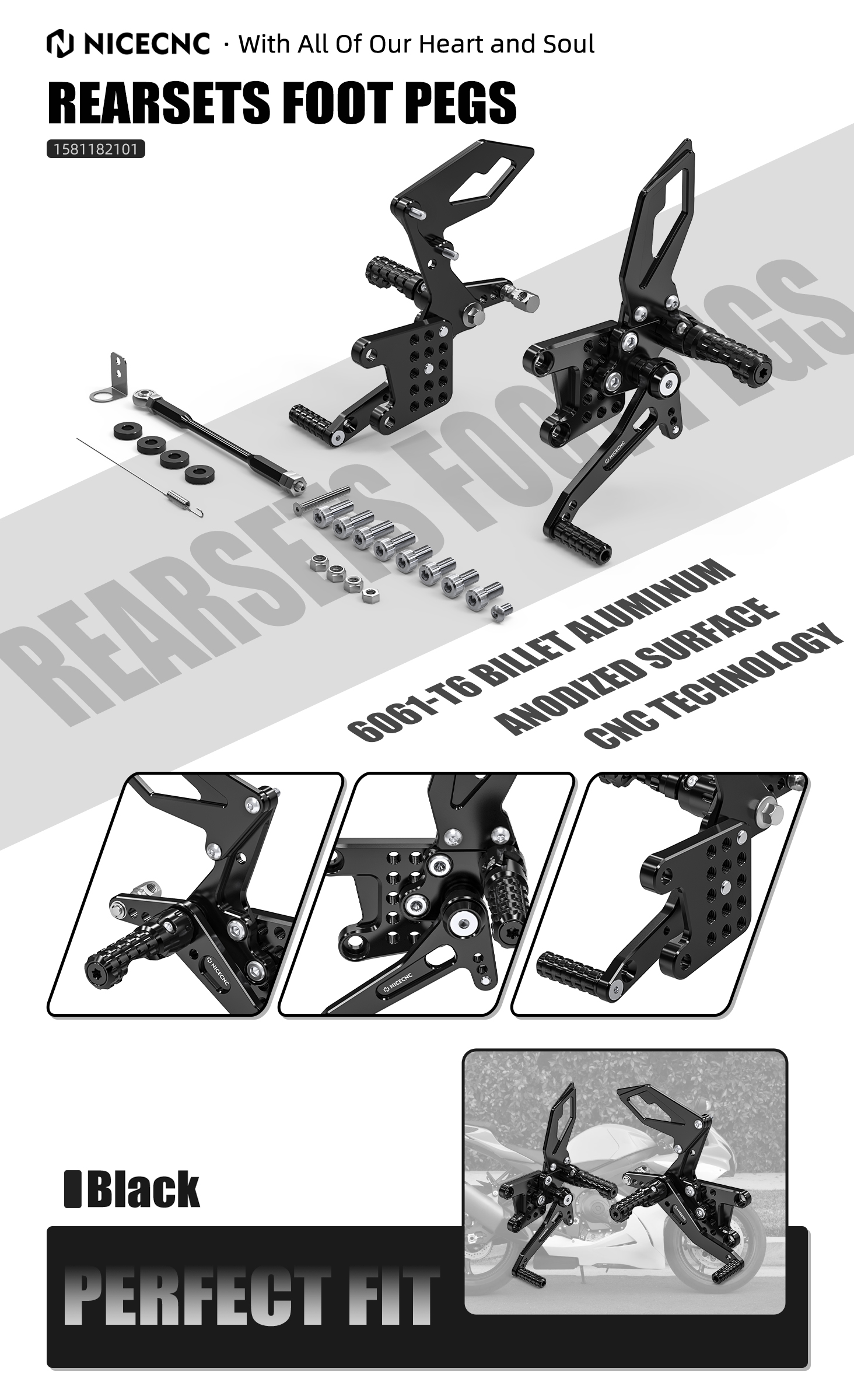 【CNC-Machined】These Racing Adjustable Rear Sets (Footrest) are CNC-Machined from aluminium billet for unbeatable rigidity and robustness