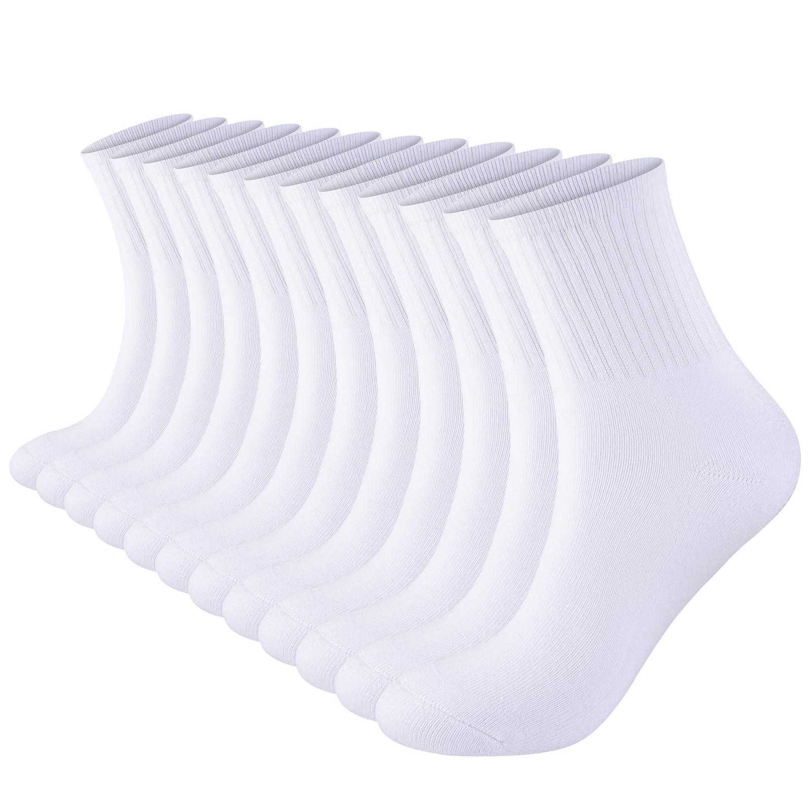 Monxiery Womens Cotton Cushioned Ankle Socks, Medium-Large, 6 Pairs White